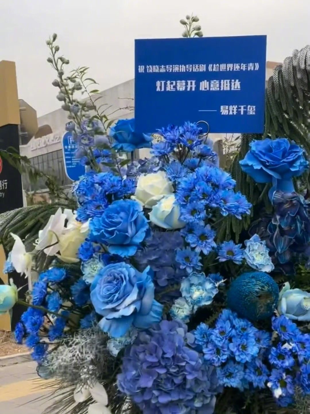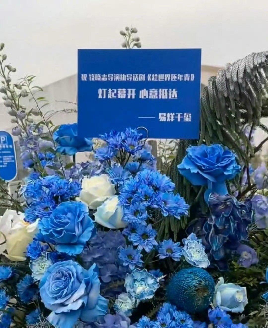 易烊千玺给王俊凯首演话剧《趁世界还年青》送了花篮,挺漂亮的
