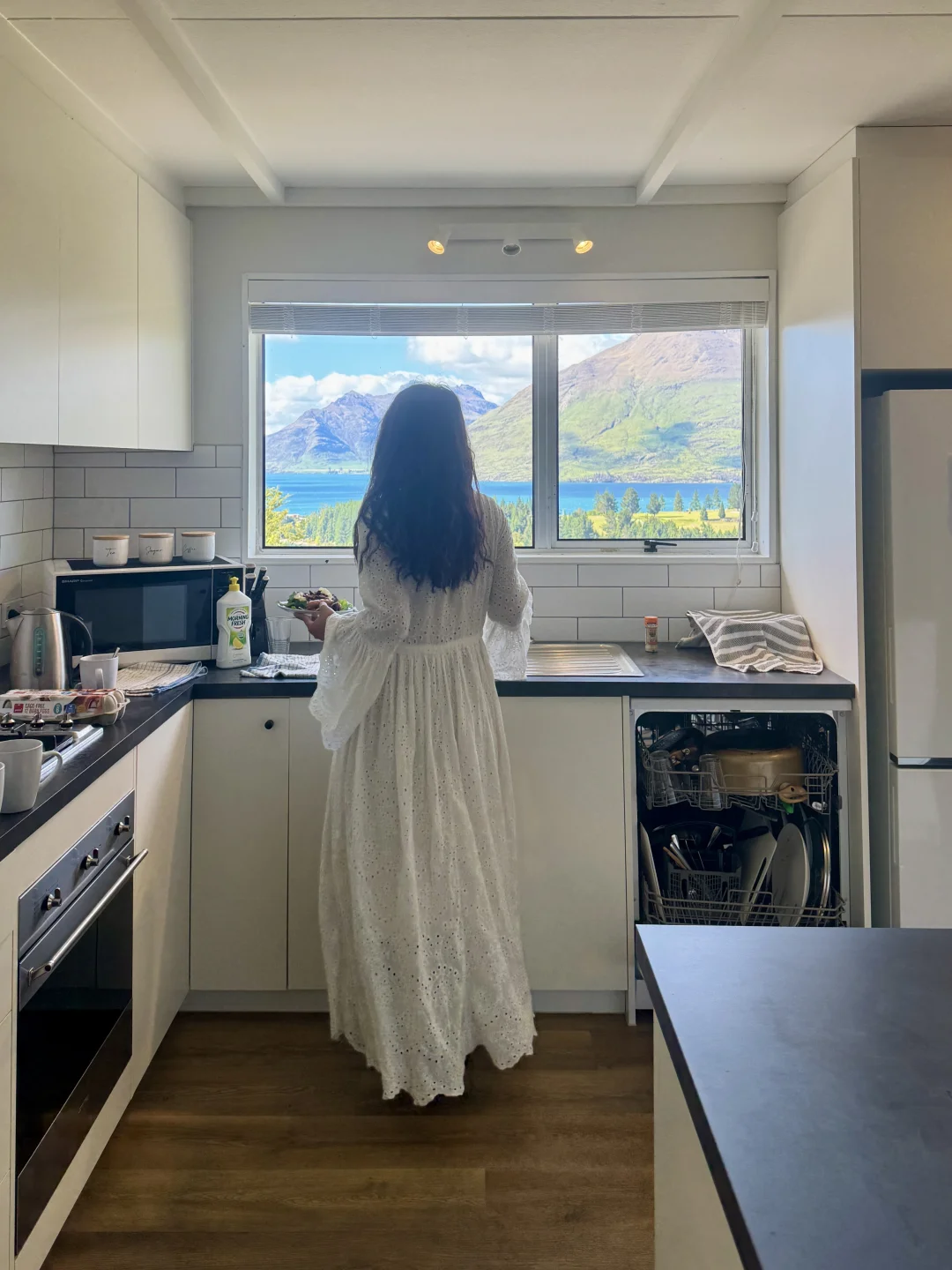 皇后镇民宿,位置更高风景更好,厨房和客厅的风景一绝