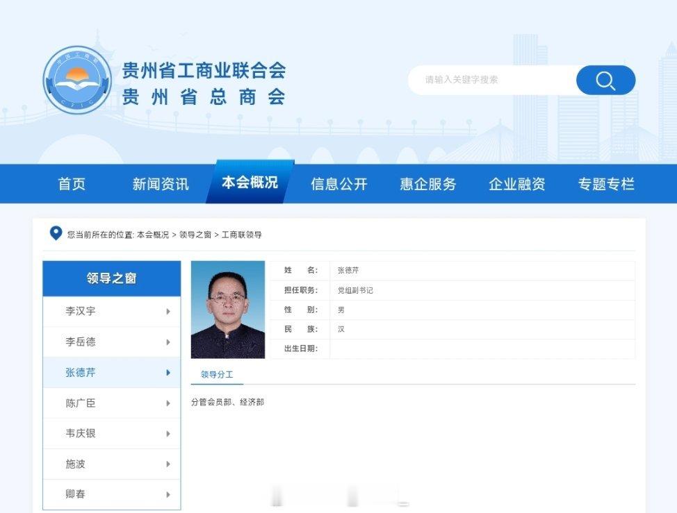 贵州茅台原董事长张德芹,任贵州省工商联党组副书记,分管会员部、经济部。