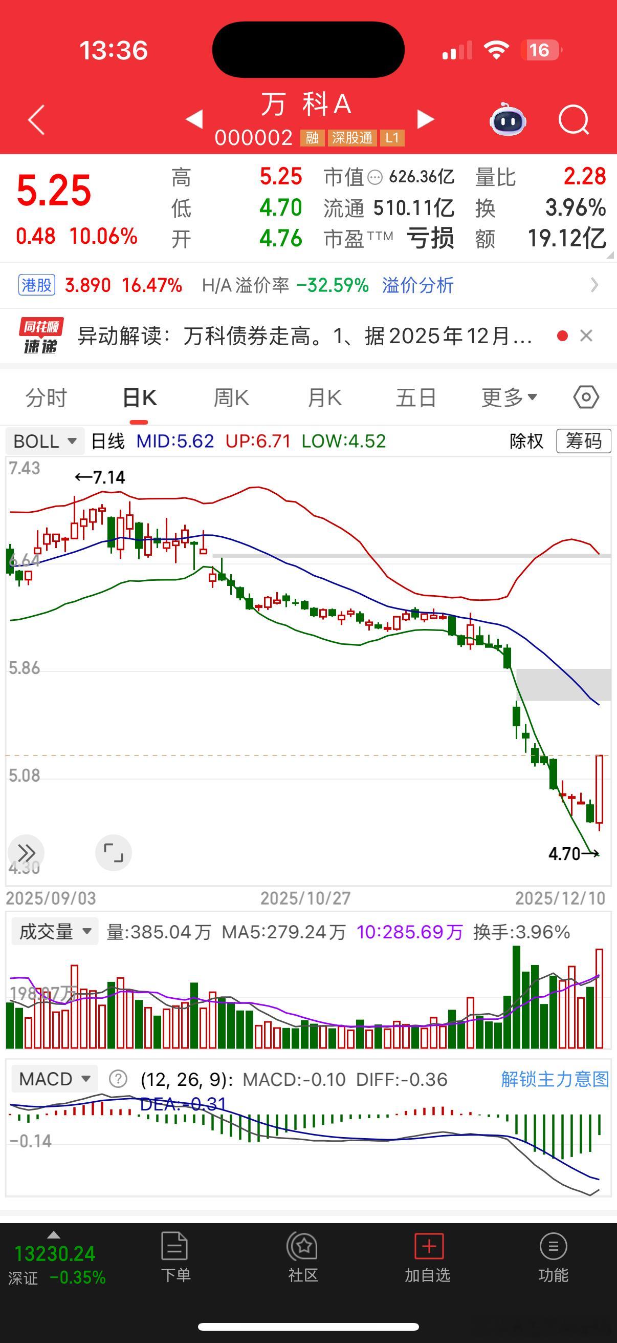 硬拉地产护指数,万科超跌反彈漲停,悲观情绪释放完毕了吗