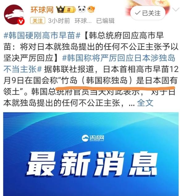 高市也把韩国拉进来了!高市早苗12月9日在国会称竹岛(韩国称独岛)是日本固有领土。 高市早苗这阵子真是挑事上瘾,前阵子刚因不当言论搅得中日关系紧张,12月9日又在日本国会放话,说竹岛也就是韩国称的独岛是日本固有领土,这下把韩国彻底惹毛了。 韩国的反应快得很,总统府当天就表态,说独岛是韩国固有领土,压根没什么争议,对日本这种主张肯定要坚决怼回去,半分情面都没留。 韩国外交部更直接,紧急把日本驻韩公使叫过去,当面提严正抗议,要求日方收回这话还得道歉,语气里的火气隔着屏幕都能感觉到。 民间的愤怒更不用提,韩国人扎堆在日本驻韩大使馆前举标语示威,日本政客觊觎独岛的话题直接冲上热搜第一,几百万网友在下面怒斥这种行为。 有人可能问,她凭啥这么硬气?说出来你都不信,她的说法连历史和法理都站不住脚,公元512年新罗王朝就把独岛纳入管辖,日本1667年的文献都承认这事儿。 1946年联合国相关机构也明确把独岛交给驻韩美军管辖,现在更是韩国实际控制,她这纯属睁着眼睛说瞎话,硬把别人的东西说成自己的。 她这么做根本不是为了领土,是打自己的小算盘。作为日本右翼保守派的头面人物,她常年否认侵略历史,2023年还去参拜过靖国神社,靠激进言论拉拢支持者。 日本国内经济不景气,民生问题一堆,她拿邻国外交挑事,就是想转移大家的注意力,把自己包装成“强硬捍卫国家利益”的形象,巩固政治资本。 这招她不是第一次用,2012年日本就搞过类似的“购岛”闹剧,当时也引发日韩、中日关系紧张,最后除了激化矛盾啥好处没捞着,现在又故技重施。 更要命的是,她这么一闹,把美国也架在了尴尬位置。美国一直想撮合日韩搞合作推进印太战略,结果她直接在盟友之间插了一刀,让美国的计划泡汤。 你见过这么给自己树敌的政客吗?刚得罪完中国,转头又把韩国惹毛,日本本来在东北亚的朋友就不多,这么折腾下去迟早变成孤家寡人。 韩国也没光动嘴,国会紧急开了会,朝野难得达成一致谴责她,还有议员提议增派驻岛人员、升级岛上设施,用实际行动护着自己的地盘。 其实领土问题从来不是靠嘴硬就能解决的,历史法理摆在哪儿,实际控制也在那儿,靠挑事转移国内矛盾,最后只会引火烧身,这点她咋就想不明白? 东北亚这地方,各国利益盘根错节,本来好好的合作机会不少,偏有人要靠制造对立刷存在感,这种做法不光害人,最终也会害了自己国家的发展。 国与国相交,当尊崇历史、恪守法理。妄图以挑衅博眼球的政客,终究难行长远。维护地区和平稳定,才是重中之重,值得众人铭记于心,你们说对不? 信息来源: 中国新闻网——2025-12-10 韩国批驳高市早苗涉领土争议发言