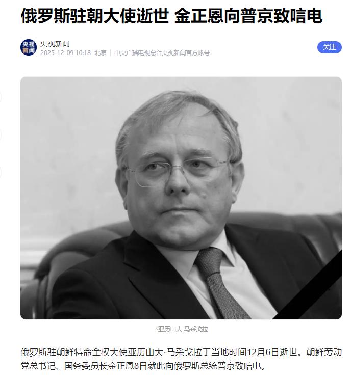 金正恩作出罕见举动,含泪给普京发了封唁电。 12月9日,朝鲜领导人金正恩就俄罗斯驻朝鲜特命全权大使亚历山大·马采戈拉的逝世,向俄罗斯总统普京和俄罗斯驻朝鲜大使馆、俄罗斯领导层和马采戈拉的家属均致以慰问和“深切哀悼”。 从上世纪七十年代苏联时期开始,马采戈拉就和朝鲜结下了缘分,算下来在半岛的外交舞台上摸爬滚打了四十多年。 2014年正式接过驻朝大使的任命书后,他更是把家安在了平壤,不像那些三五年就轮换的同行,他是真把这里当成了第二故乡。 在莫斯科国立国际关系学院毕业后,他从翻译、经济参赞一步步做起,既懂朝鲜的政策门道,又熟当地的人情世故。 俄罗斯外交部称他是“思想精神导师”,朝鲜外相崔善姬也说他是“外交官的榜样”,这些评价都不是虚的。 金正恩的悲痛,首先是为一位真正的老朋友。 去年朝鲜劳动党79周年庆典上,马采戈拉是唯一以金正恩私人贵宾身份坐在主桌的外国使节,这份荣誉在平壤的外交圈里独一份。 今年夏天元山新旅游区竣工,金正恩带着家人出席时,在一堆外交官里特意拉着马采戈拉聊了很久,还专门请他和使馆人员当首批游客。 光跟老百姓处得好还不够,这老大使在正经事上更不含糊。 朝鲜学生现在能在平壤外国语大学的俄语中心学地道俄语,优秀的还能直接去俄罗斯留学,这背后是马采戈拉一次次协调推动的结果。 俄朝合资的企业通过罗津港,一年就把60万吨俄罗斯煤炭运到中国,既帮俄罗斯打开了新通道,朝鲜也赚足了外汇。 现在朝鲜超市里,俄罗斯的香肠、奶酪摆得整整齐齐,这些都是他跑出来的实惠。 文化上就更热闹了,他拉来俄罗斯乐团在平壤开演唱会,组织俄罗斯运动员参加平壤马拉松,让两国老百姓越走越近。 2024年6月,金正恩和普京在平壤签下《全面战略伙伴关系条约》,里面明确写着“一方遭攻击,另一方全力支援”,这份重量级条约能顺顺利利落地,马采戈拉就是最关键的“传话筒”。 12月4日条约刚正式生效,没过几天就少了这位核心推动者,难怪金正恩会在唁电里直言“这是俄朝两国的巨大损失”。 这封唁电,也是金正恩对俄朝关系的一次公开表态。现在朝鲜在国际上压力不小,俄罗斯是实打实的合作伙伴。 2023年以来朝鲜给俄罗斯运去上百万发炮弹解燃眉之急,俄罗斯则帮朝鲜发展军工和农业,这种互相依靠的关系容不得半点含糊。 马采戈拉走了,金正恩用最动情的方式告诉普京,也告诉全世界:就算少了个“搭桥的人”,俄朝的友谊根基也动不了。 说到底,再宏大的国家关系,最终都是由一个个有温度的人来维系的。 马采戈拉用四十年的坚守换来了信任,金正恩用一封含泪的唁电回应了情谊,这份跨越国界的真情,比任何外交辞令都更有力量。