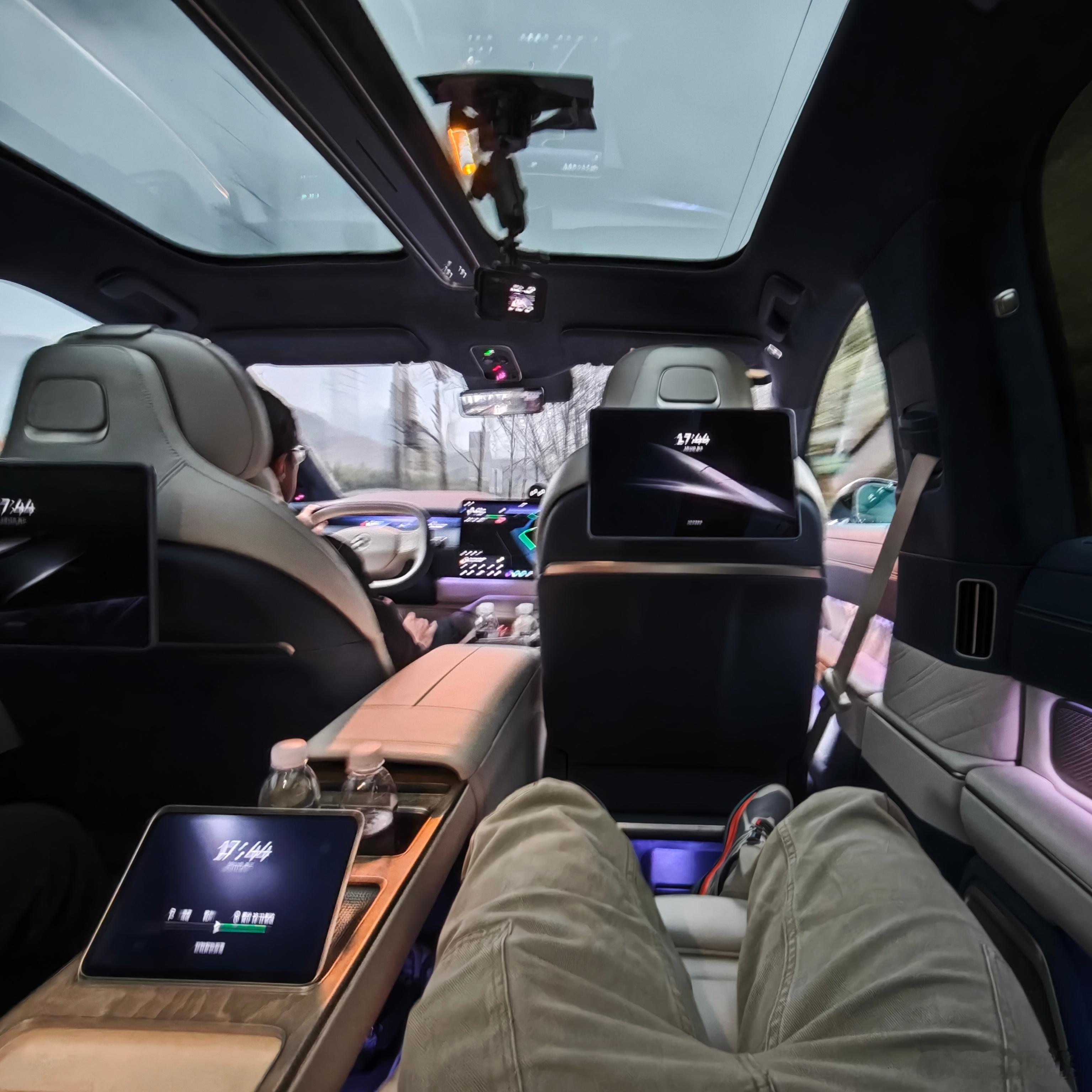 iCar V27是第二台使用「天空岛」设计的车。也就是天窗分为左右两片,和蔚来ET9一样。这种设计的优势是既能保证车内通透感,又能保证车身刚性。劣势是天窗无法打开,其实就是全景天幕的变种。这种设计会成为下一个潮流吗?
