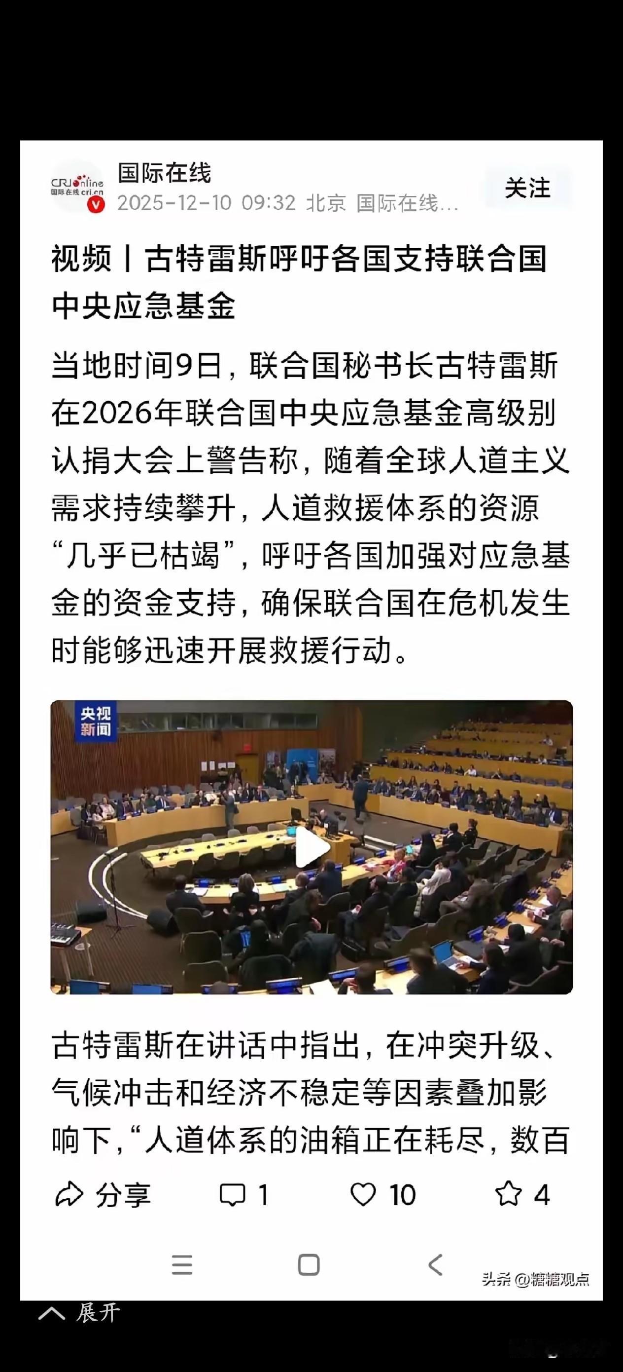 古特雷斯又要应急金了! 想想,这一个月我们直面日本,寸步不让,联合国却仿佛一直在“装睡”。说实话,如今的联合国好像只剩下了会费与利益——古特雷斯这位秘书长,被不少人看作史上最憋屈的一位:我们如数缴纳会费,正义却迟迟得不到声援;反观长期欠费的美国,反而能在联合国大厅里横冲直撞。 联合国秘书长这听着是“世界大管家”,风光无限,可实际上手里没兵没粮,说话硬气全靠会员国给面子、给支持。 他更像一个巨大的、复杂的国际物业公司的经理,而公司里最大的那个业主,就是美国。这位大业主,近年来不仅拖欠巨额物业费(会费),还动不动就威胁要退出。 古特雷斯最近为啥又是警告“破产危机”,又是不得不提出削减预算、裁员将近2700人的方案?直接原因就是收不上来钱,现金流快要断了。截至今年底,会员国拖欠的会费总额已经接近160亿美元。这个大窟窿,主要就是最大的摊款国美国长期拖欠造成的。 美国的权力,根植于它作为创始国、安理会常任理事国的政治、军事和金融霸权地位。它的一票否决权是写进《联合国宪章》的。它可以用拖欠会费作为政治施压的工具,但联合国的规则(《联合国宪章》第十九条)又很难真正惩罚它。 联合国本该是讲公平正义的地方,现在却成了霸权国家的后花园,缴费多少成了衡量话语权的标准,哪还有当初成立的意义。咱缴着会费求公道,结果正义迟迟不到,这样的联合国,再捐多少应急金,也难挽回大家的信任。只希望联合国能早点清醒,别光盯着钱,多干点正事,给守规矩的国家一份公道才是本分。