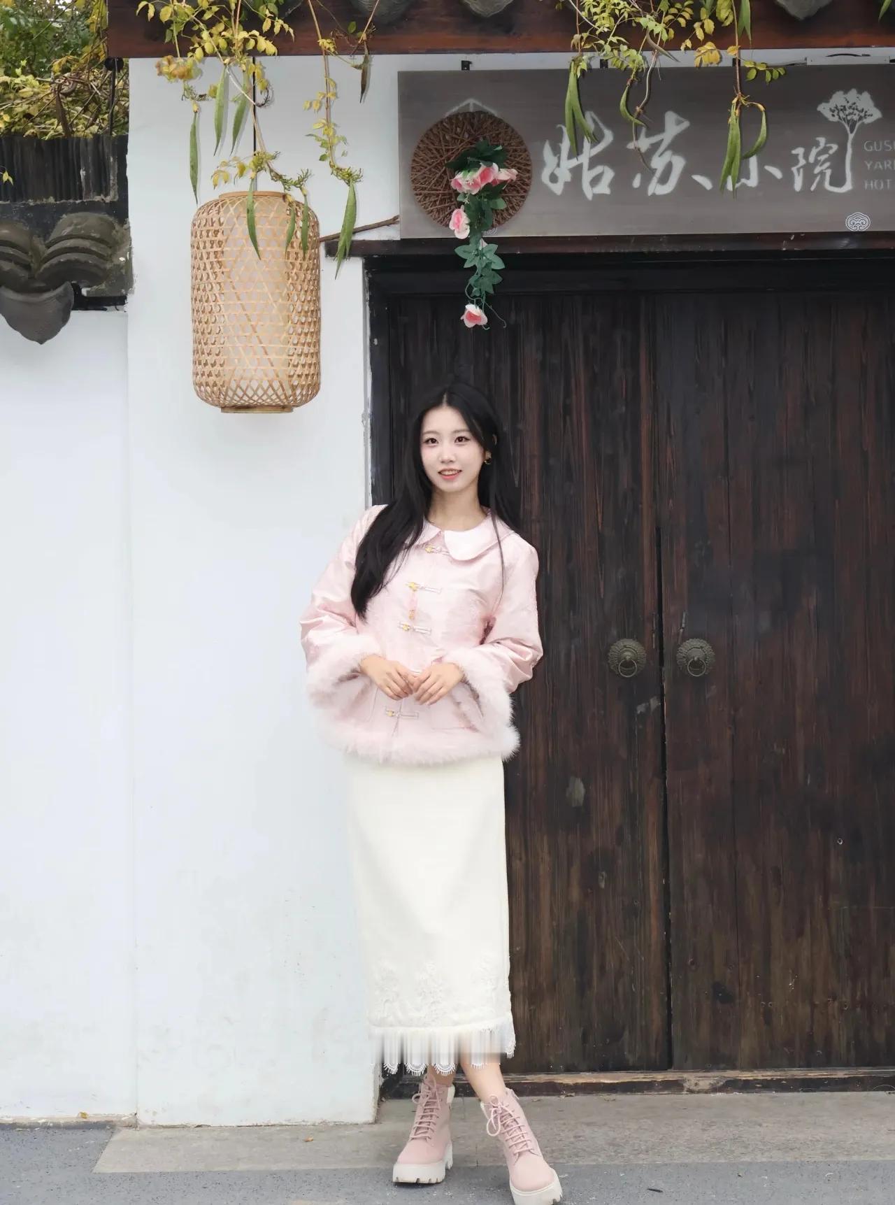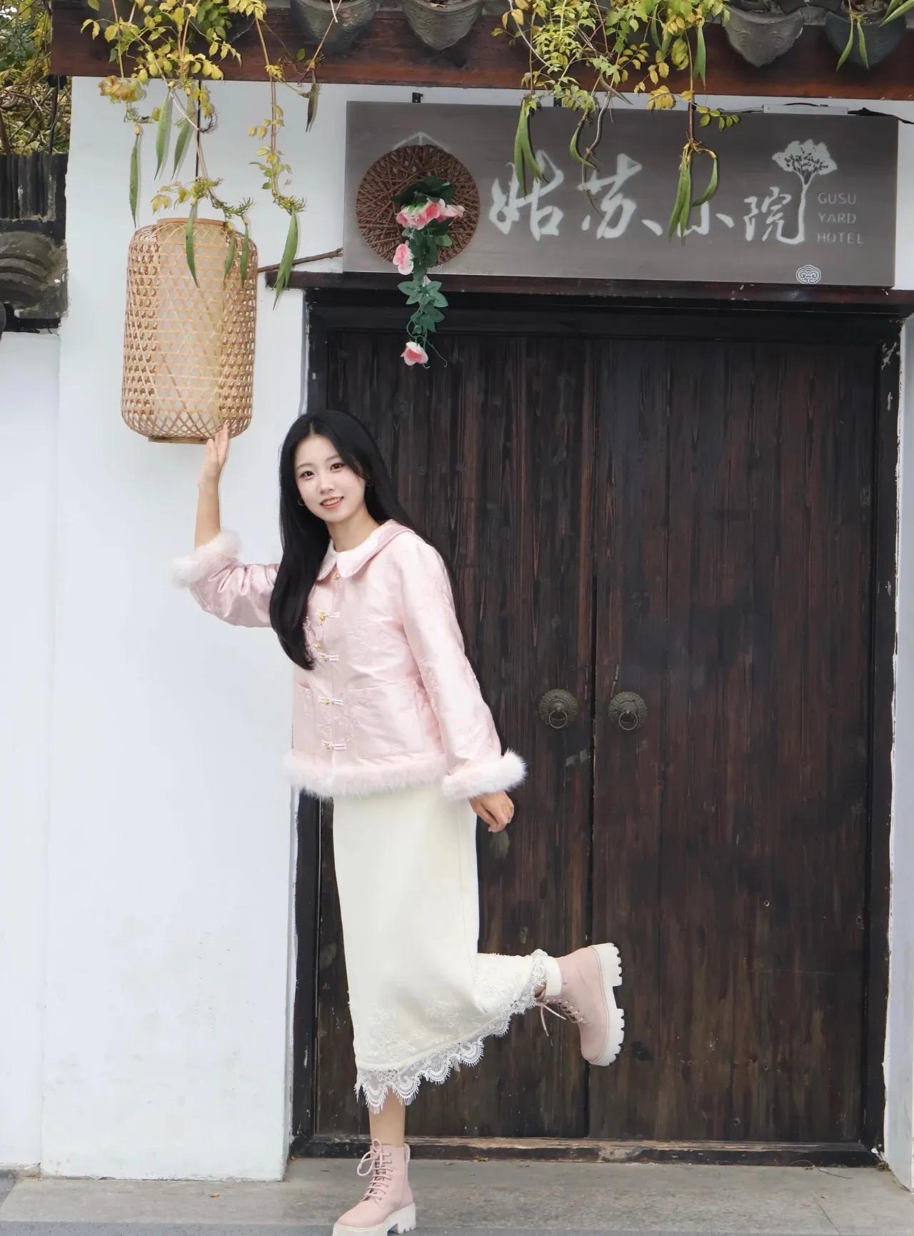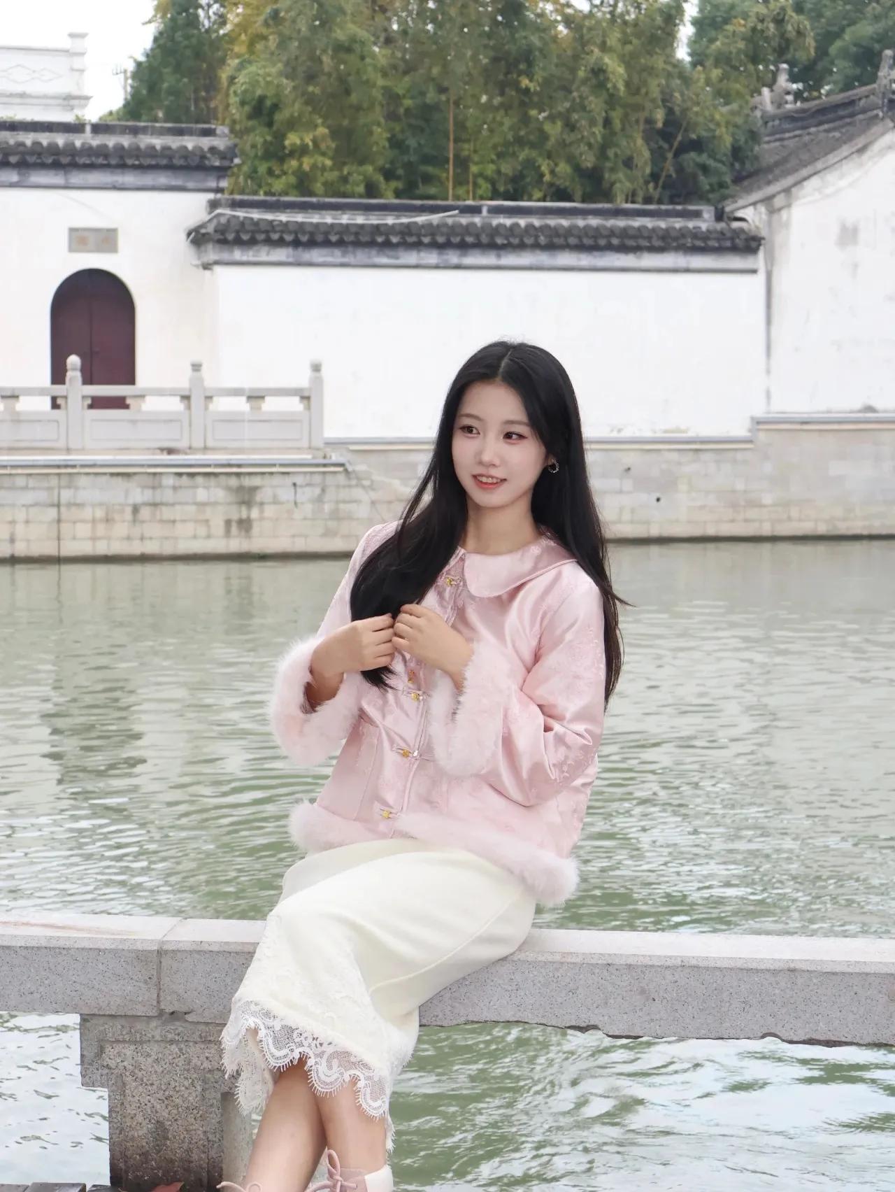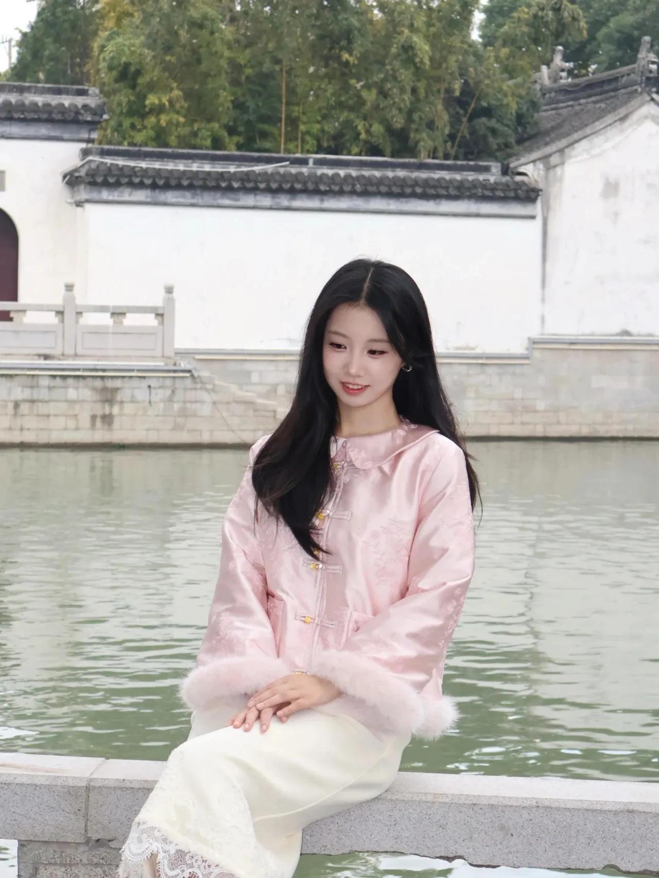 温柔自成光她立于浅灰的背景前,似揉碎了一缕暖金融进衣衫。缎面的光泽轻覆周身