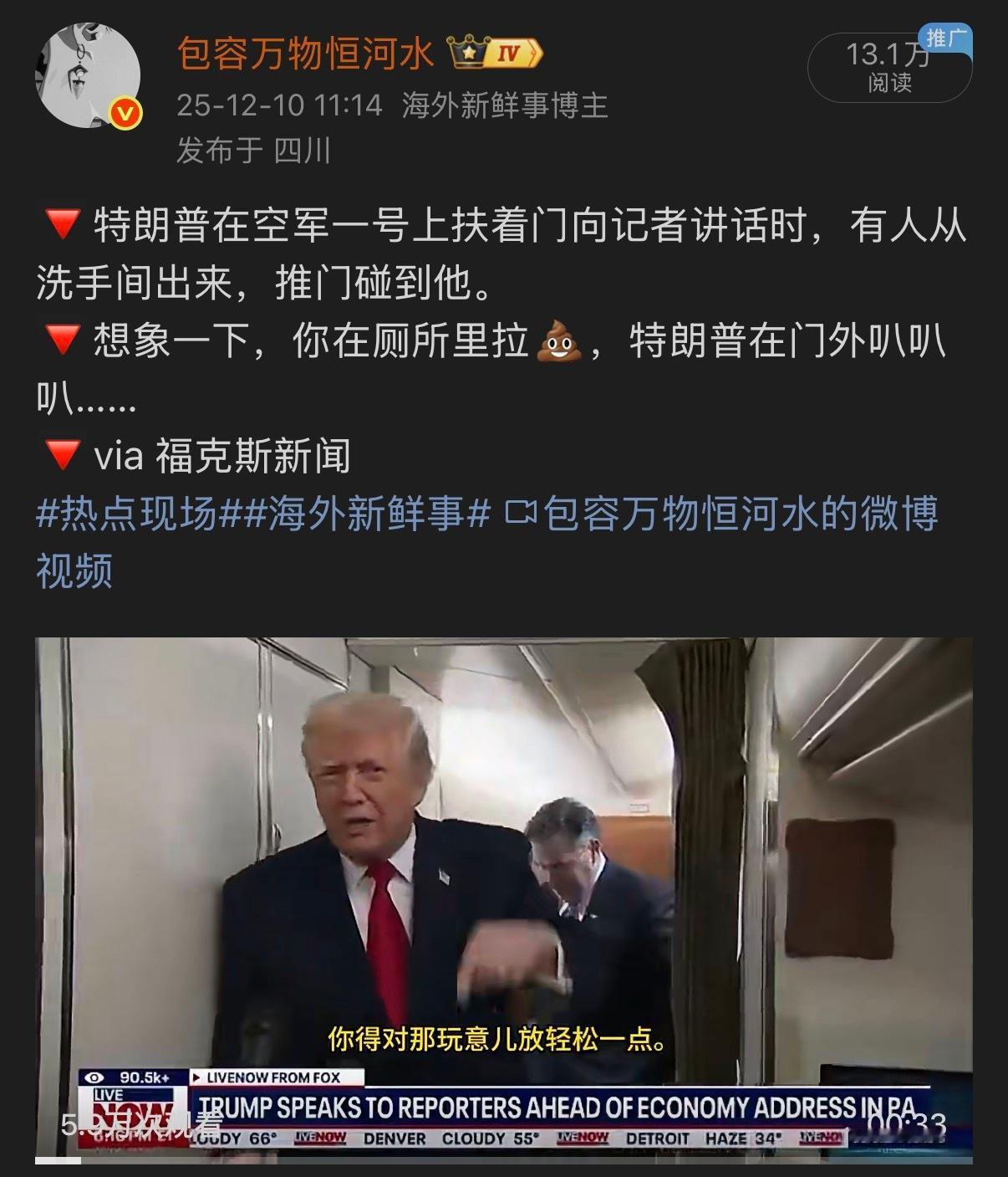 🔻特朗普团伙看谁在厕所里。热点现场海外新鲜事