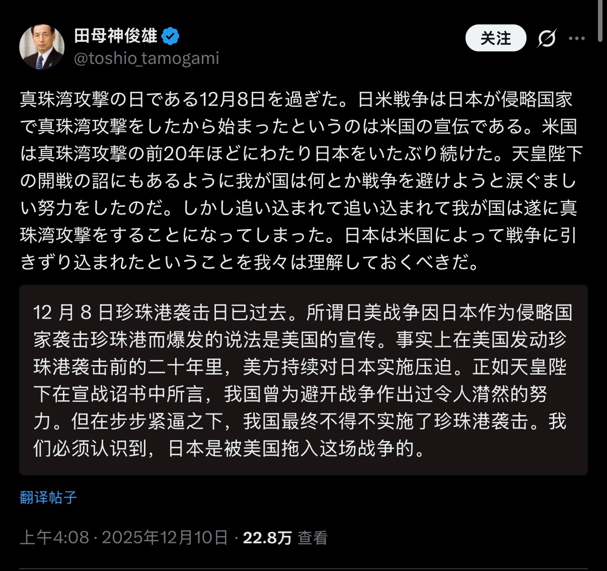 🔻网友分享,日本航空自卫队第29任幕僚长再次宣称:珍珠港是美国活该。🔻此人当年就是因为这样的言论被撤职的。日本求锤得锤热点现场海外新鲜事日防相承认中方训练前通报日方