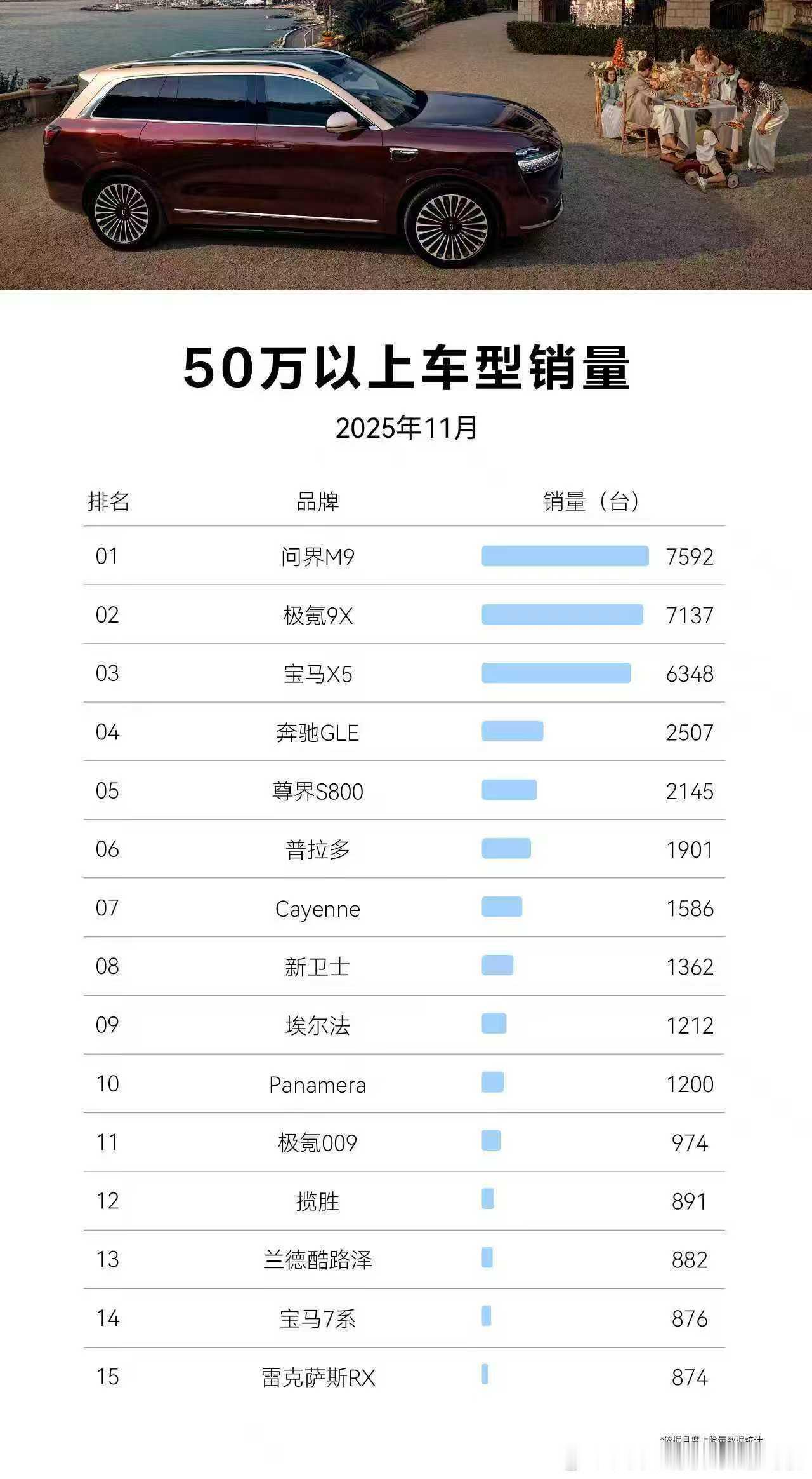 极氪9X很猛啊,11月销量超过问界M9,是50万级的第一名,打破了问界M9保持2