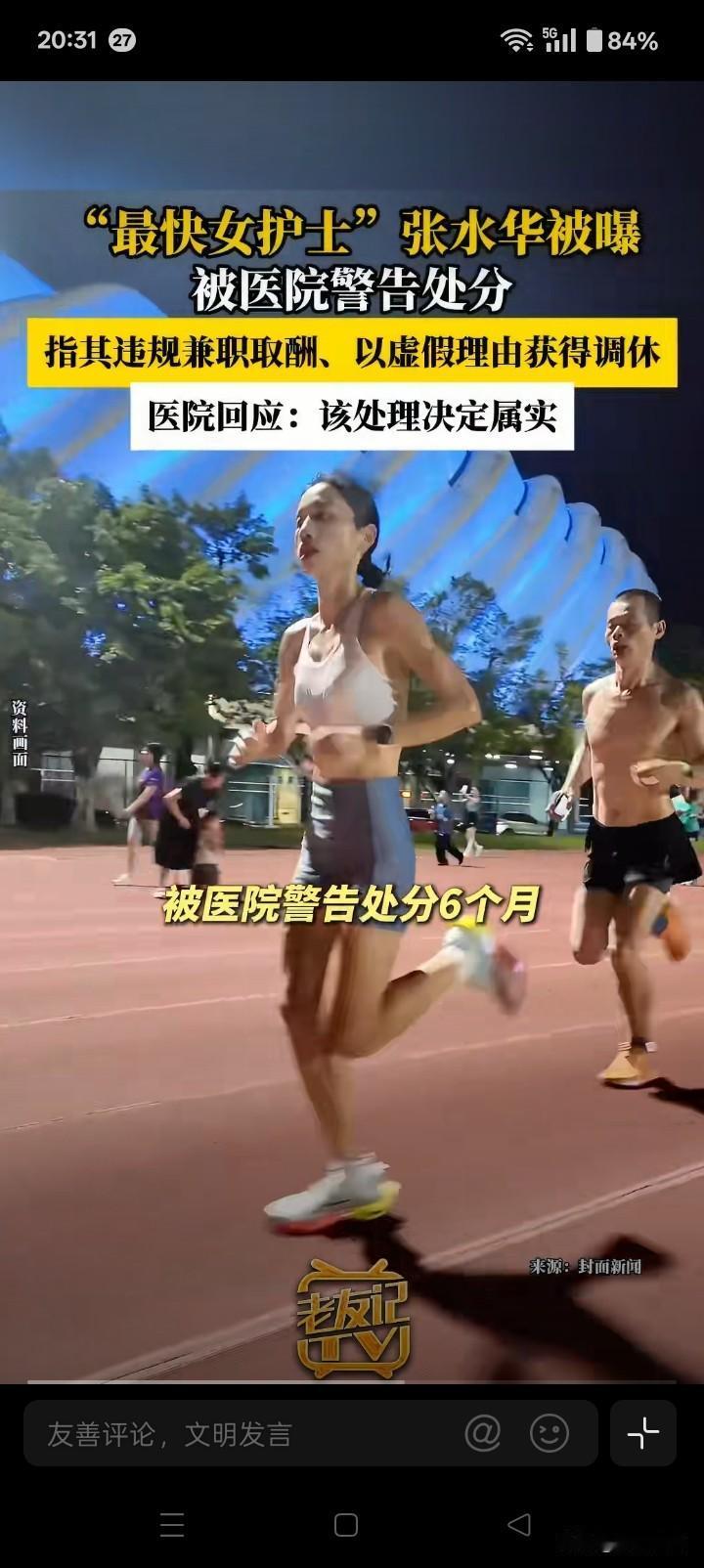 原来马拉松跑的最快的不是医院,最快护士张水华。而是那份医院内部处理通报 一份关于最快女护士张水华被处分的医院内部通告却被当成了流量密码和谈资发到了网络上,这份处理决定上面的告知对象非常明确,写着各院区,各科室,各分院,各中心,完全属于医院内部通告。我想大家一定明白内部通告的意义!主要目的不还是让内部员工引以为戒,为标准,起到警示作用吗!属于内部管理问题! 一份原本属于医院内部的处理决定,为什么会传播到网上和社会上的主要内在动力就是流量及好奇心驱使,部分人对热点人物的相关信息缺乏敬畏之心,他不管能不能对当事人心里还是隐私产生伤害,又或者对医院或者同事是否有影响!而是当做吃瓜素材广泛传播这种行为就是在走钢丝! 医院虽已启动调查文件外泄的调查工作但这件事从另一个方面说明,医院对员工的管理教育方面,非常欠缺 内部文件的外泄不仅对当事人的名誉产生了伤害,也对医院的形象,管理上的漏洞,员工的素质和员工纪律性让公众产生了严重的质疑!甚至成为笑话