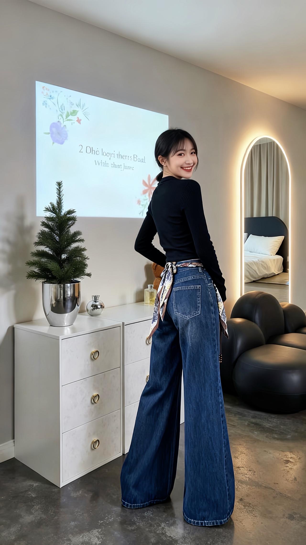 小个子穿搭 牛仔裤穿搭 冬季搭配 阔腿裤拖地裤 百搭裤子