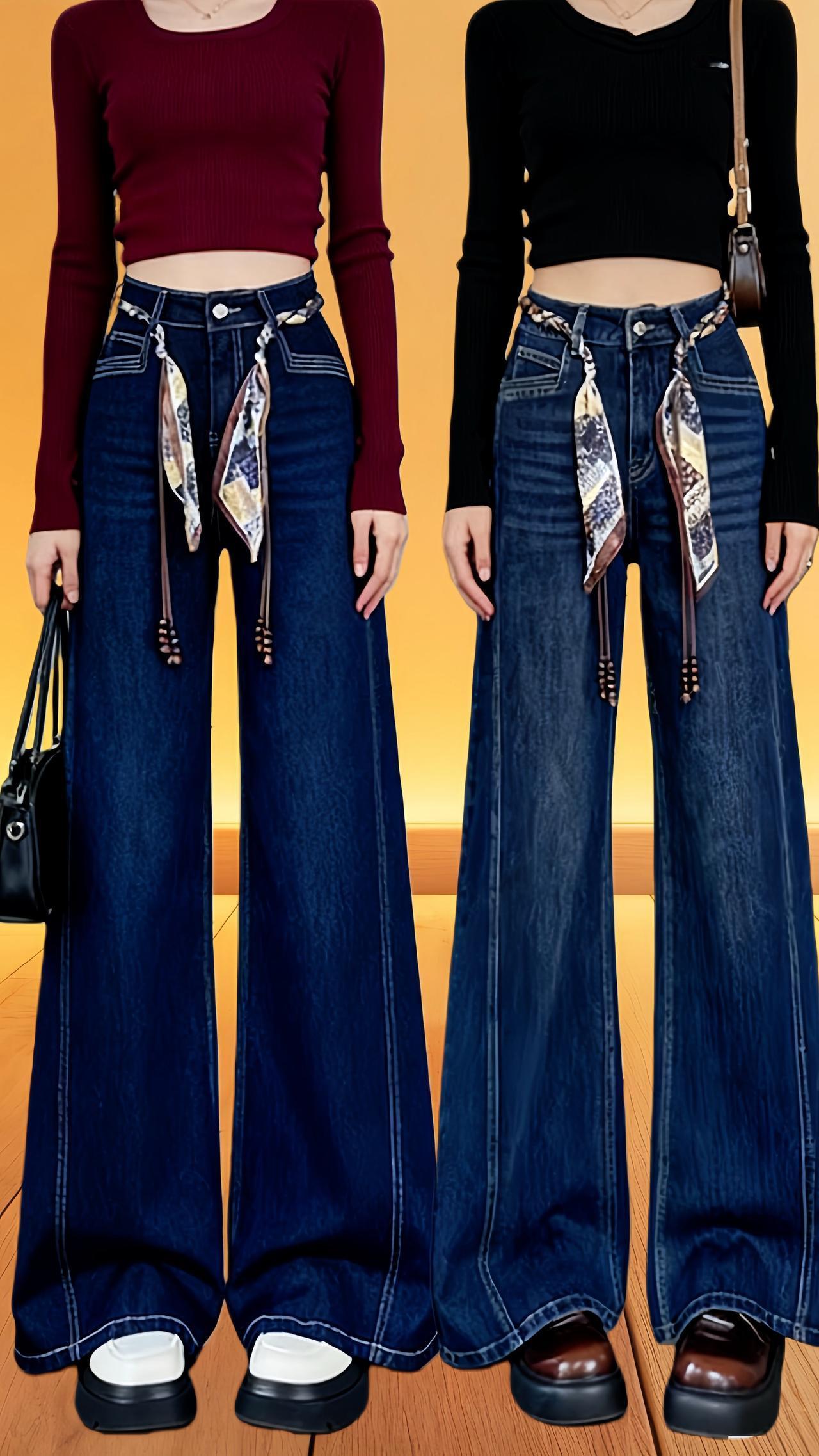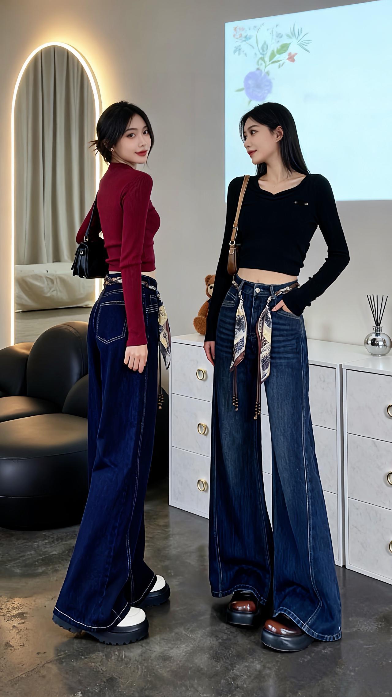 牛仔裤 牛仔裤穿搭 小个子穿搭 加绒阔腿裤 冬季穿搭