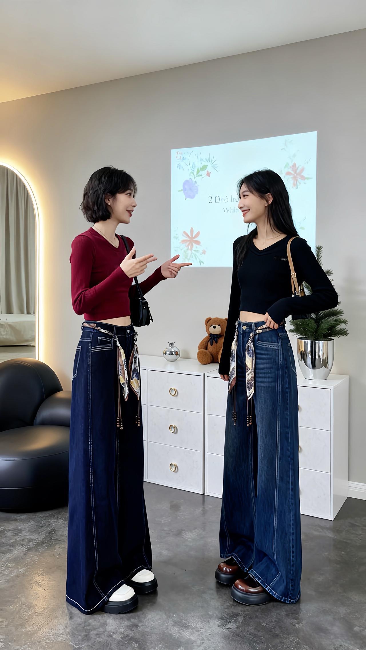 复古穿搭闺蜜穿搭姐妹装阔腿裤推荐每日分享