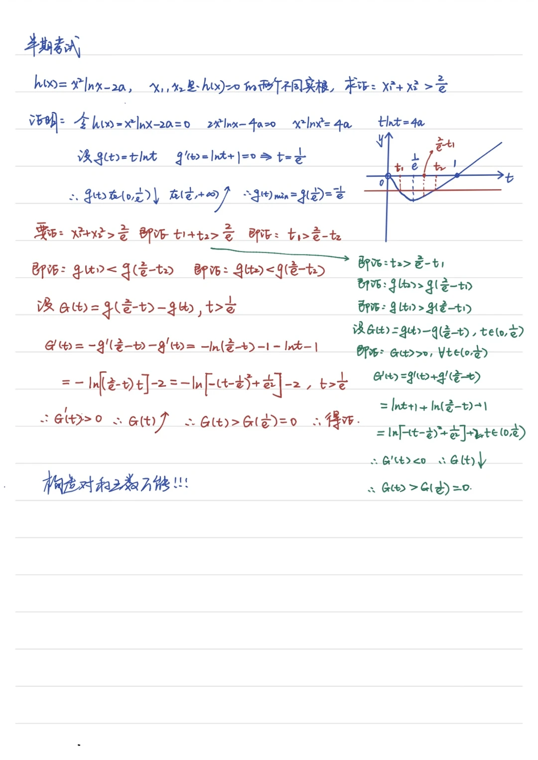 最近几次考试,极值点偏移的题目频频现身,很多娃娃看到就头疼,我没有系统讲解过。因为我教的班级层次不高,我也在反思,讲得太浅,考试依然不会,讲得太难,又怕娃娃消化不了… 但高三就是不断突破的过程,一轮复习更要回归本质,所以这次我决定: 不炫技,不跳步,从函数图象到对称构造,从常规解法到变形技巧,把极值点偏移讲得明明白白!