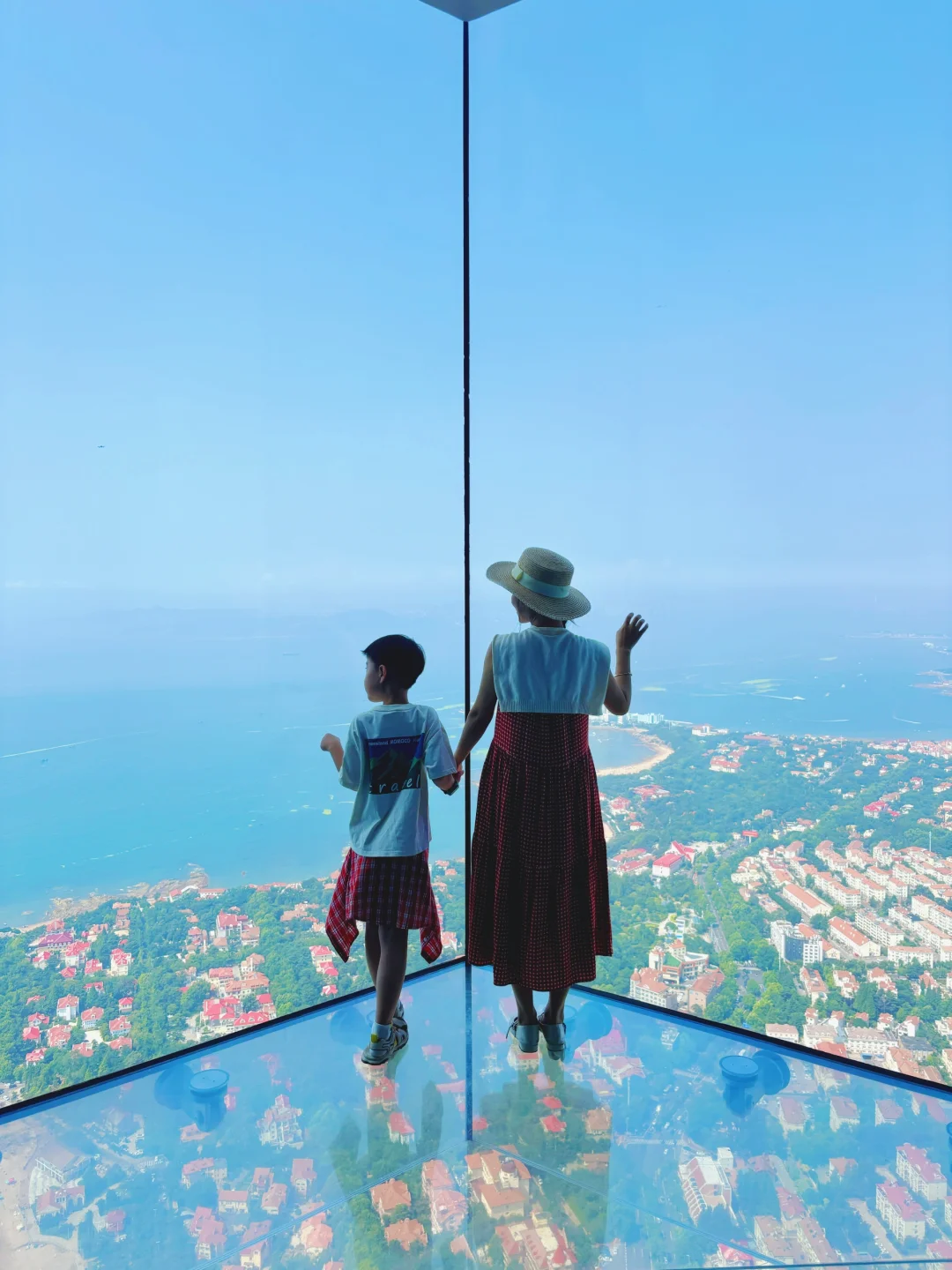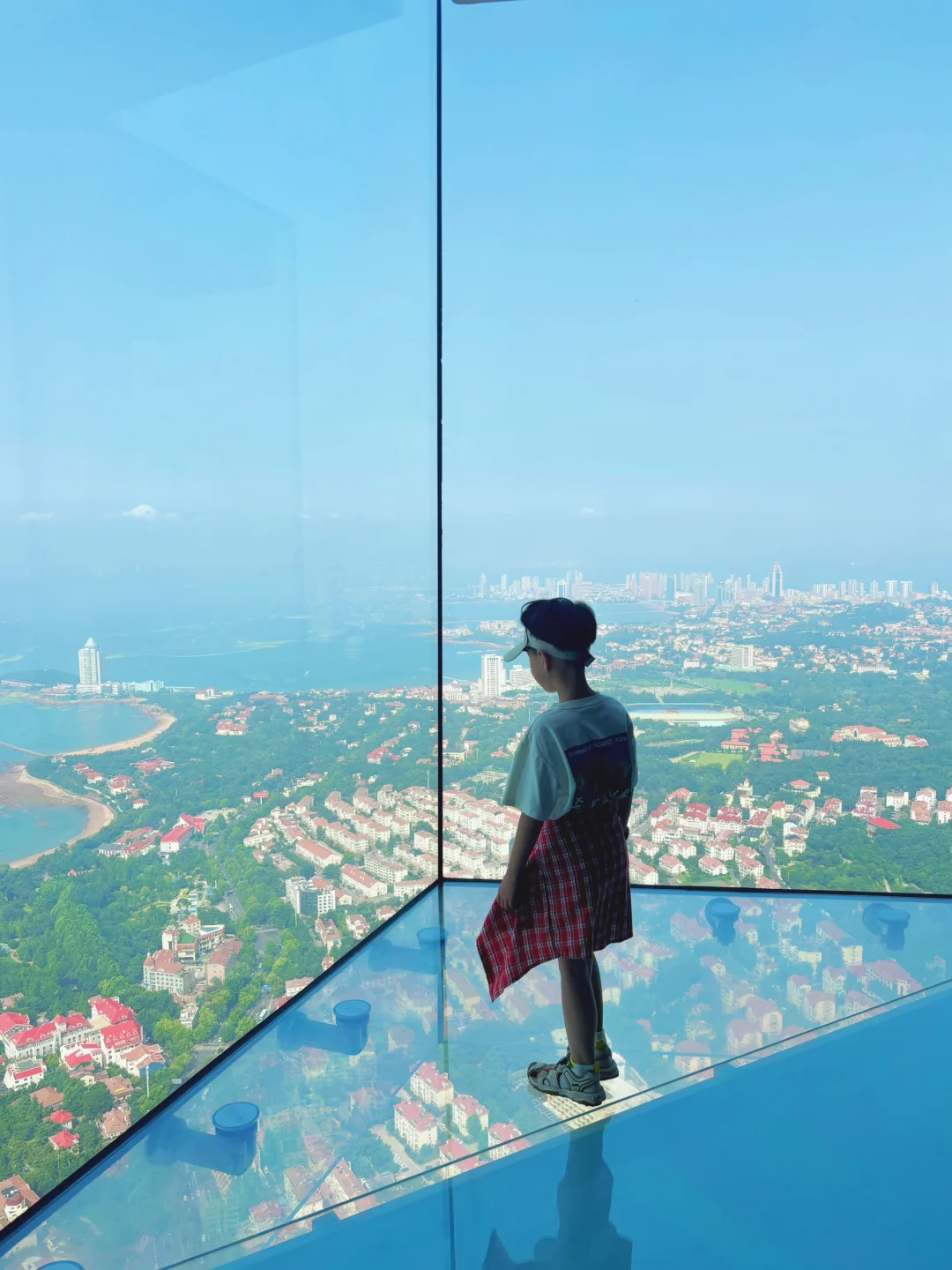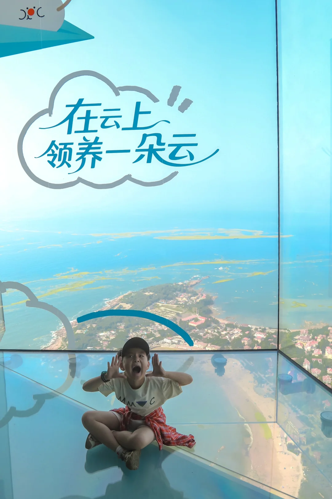 被青岛最近的天气美到了 早晚虽凉快,但是白天还是又热又晒 但是好在白天天气晴朗,在海边分钟就能出片 暑假带小朋友来海边玩,天气炎热一定不能错过在云上海天81F眺望整个青岛胶州湾,室内遛娃也不耽误赏青岛美景,亲子游首选 🔵红瓦绿树碧海蓝天出现在脚下,远处的海平线也融化成蓝调,360°青岛蓝在此刻具象化了,恐高星人的我也被震撼到了 🔵80F还有情绪艺术展,通过光影触摸绘画等互动让小朋友直观感受不同情绪的表达方式,非常适合亲子体验 🔵可以通过情绪制作一杯夏日饮品,还可以领取棉花糖,互动装置特别多,小朋友都超爱 ✅乘坐电梯时,会有飞机起飞的感觉,可以让小朋友不断吞咽口水,不适感会逐渐消失哦 ✅玩累了还可以去82F云景餐吧享受美食美景哦 ✅建议上午9-10点,下午4点以后拍照更出片 大家这个暑假带娃去哪里来一起分享呀