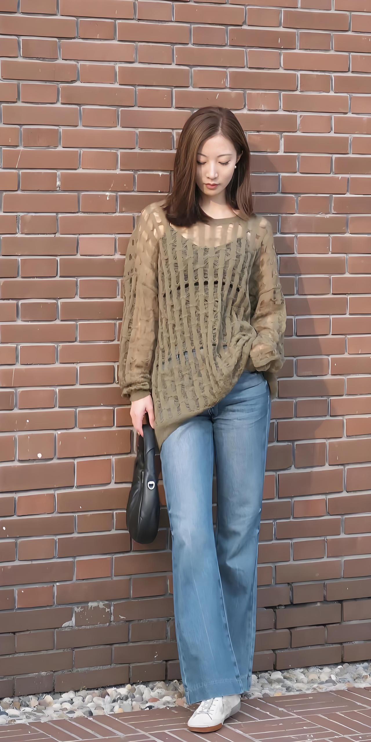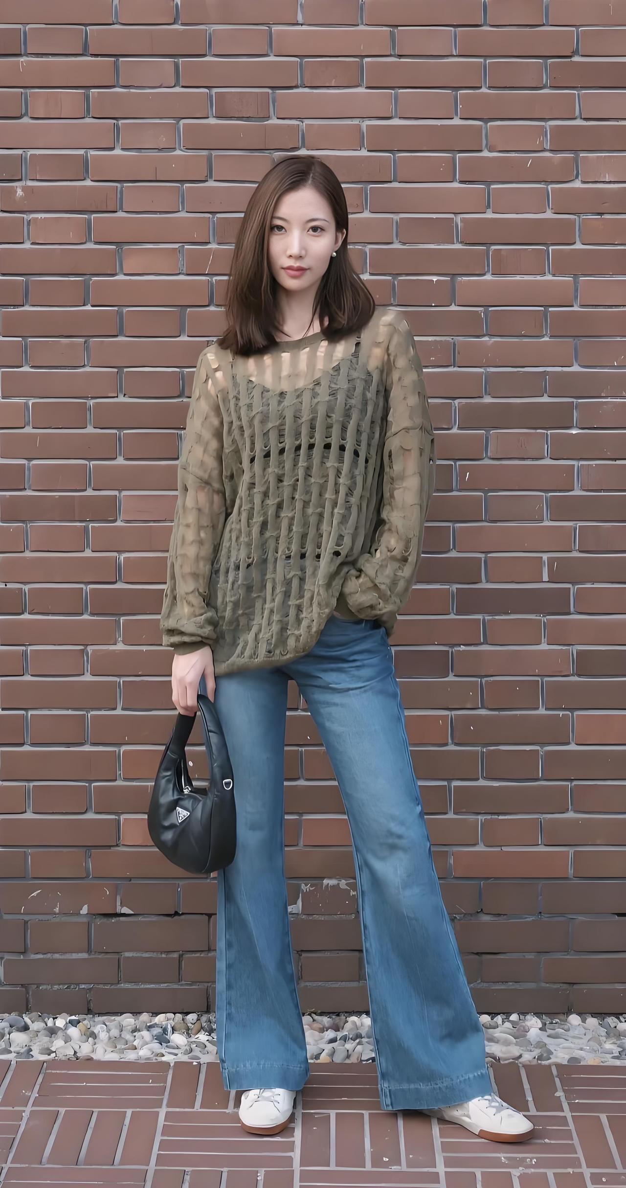 白色毛衣+灰色紧身裤,简约又时尚,镜子前自拍,完美展现穿搭!📸✨