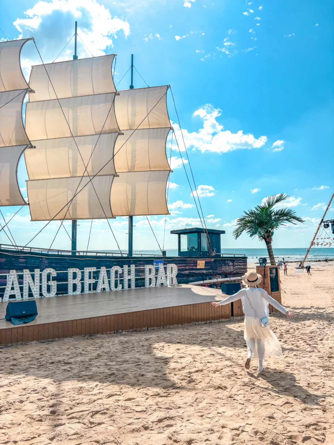 3⃣金沙滩,就在啤酒城旁边,沙子细腻,网红秋千特别出片,还有儿童游乐区