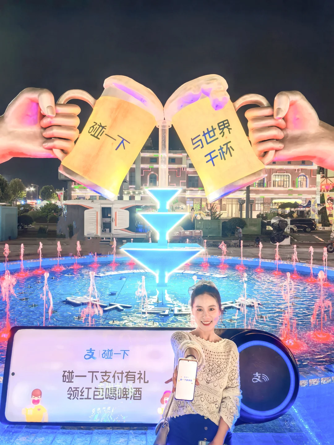 ✍🏻现场还打卡了支付宝的碰杯大装置,碰一下还能领啤酒节红包、开启喷泉互动