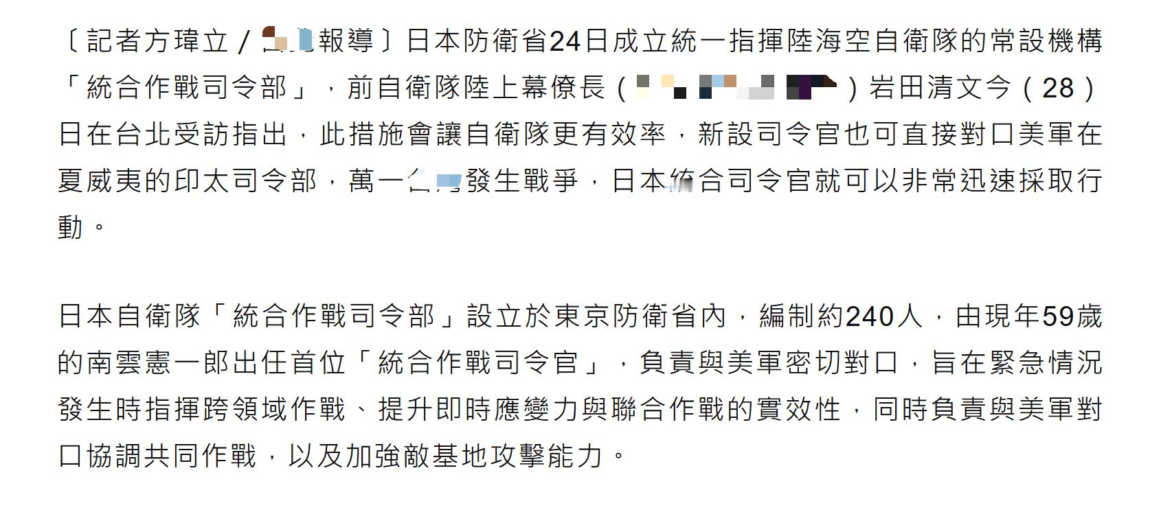 今年3月成立的霓虹自卫队统合作战司令部,这两天要么在搞日米亲善,要么在转发陆自灭