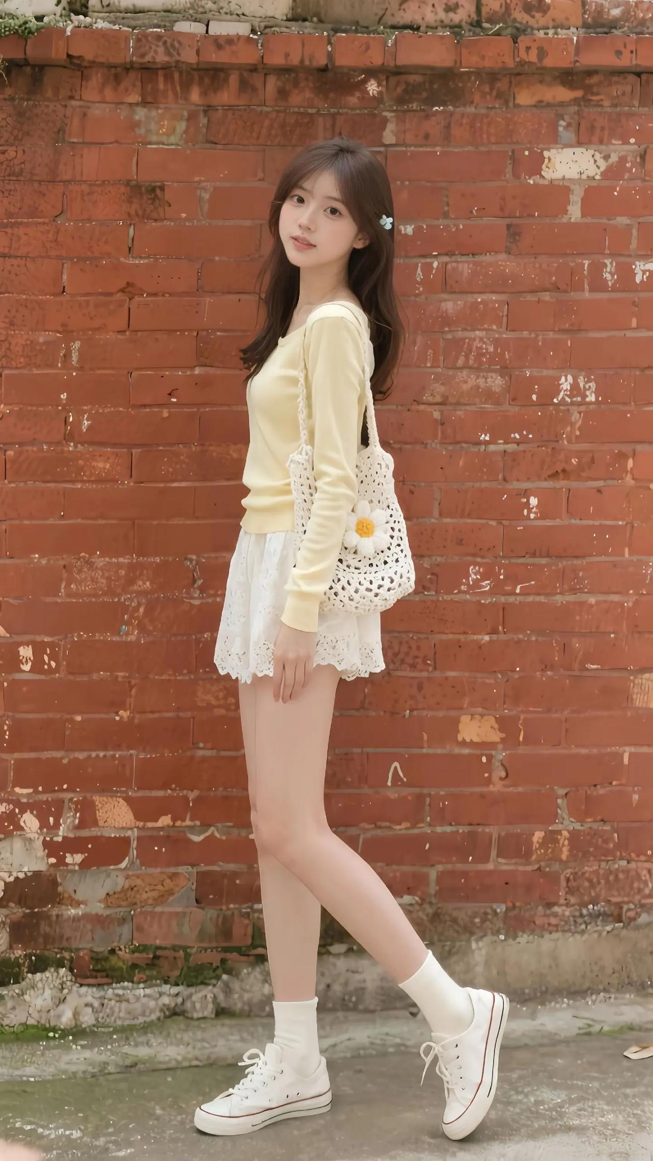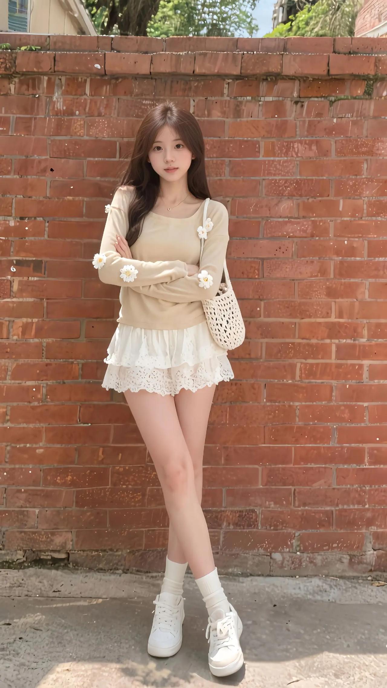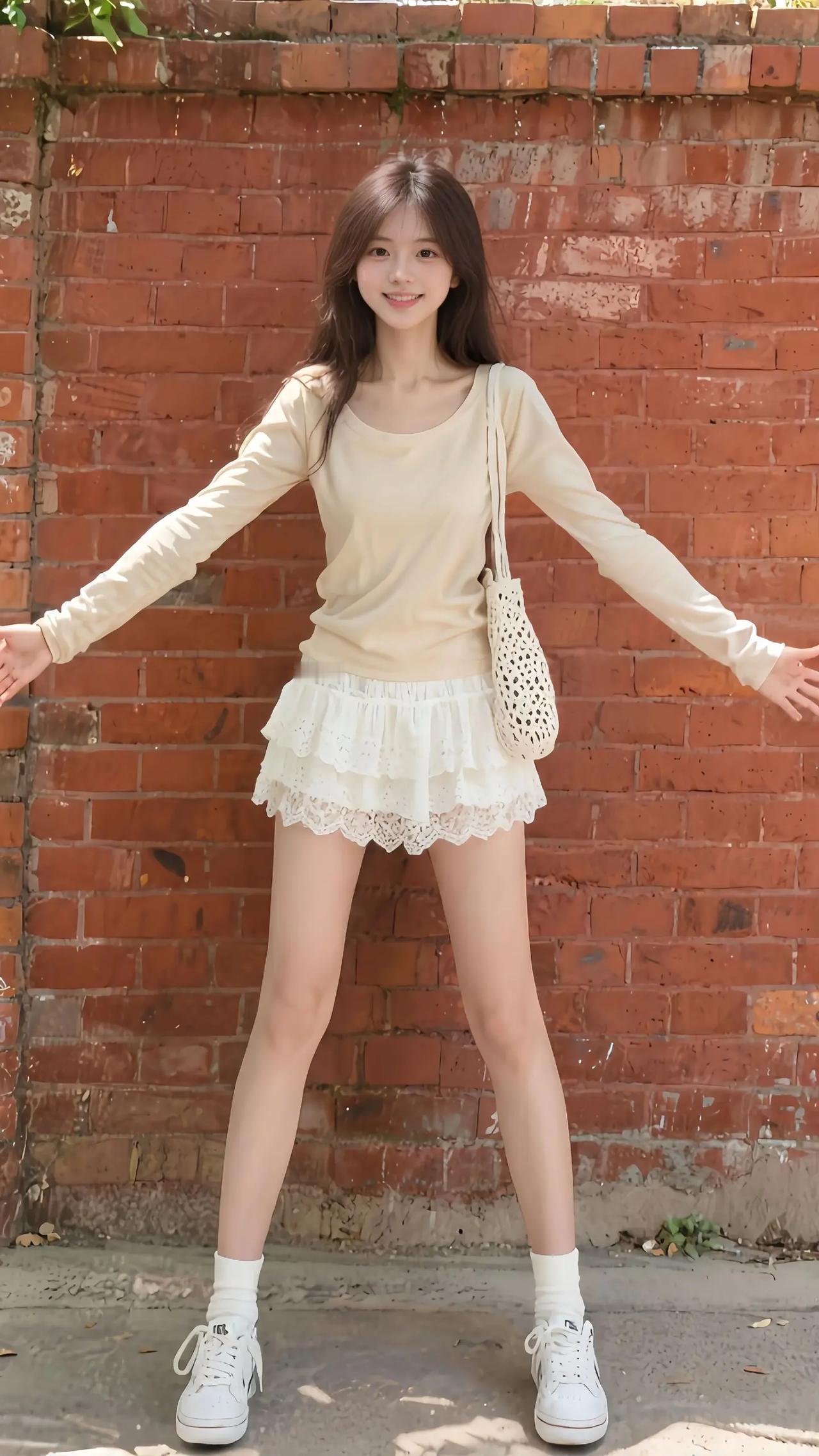 甜美少女风穿搭,白色蕾丝裙搭配米色长袖,元气满满!🌸👗👟