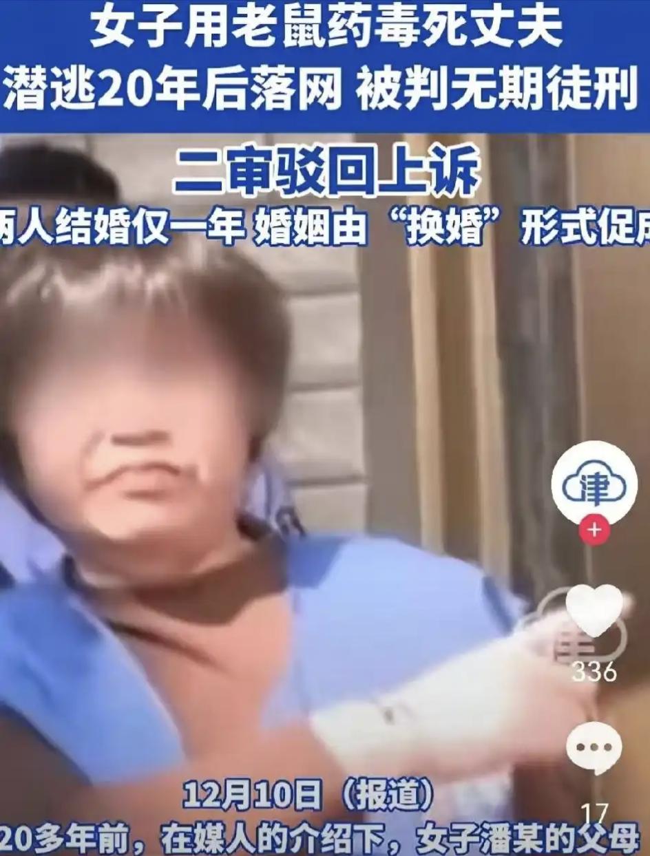 20多年前,在媒人的介绍下,女子潘某的父母将她与邻村的吴某家“换婚”:让她嫁给吴某,吴某的妹妹嫁给她哥哥。婚后,潘某经常遭到吴某的打骂,吴某经常在潘某月经期间强行要求同房。 这场始于“利益交换”的婚姻,从一开始就剥夺了潘某的选择权。彼时24岁的她,只是父母解决三哥婚娶难题的“筹码”——潘家因哥哥们娶妻负债累累,吴家也苦于儿子娶亲无门,两家一拍即合,用一双女儿的人生,换来了所谓的“皆大欢喜”。可没人问过潘某愿不愿意,更没人想到,等待她的是无尽的地狱。 吴某自始至终觉得“换亏了”,嫌弃潘某长相普通、身材不高,便把生活的怨气全撒在她身上。日常打骂是家常便饭,身上的伤痕旧叠新,而生理期的强制侵犯,更是把羞辱和伤害刻进了骨子里。潘某的反抗只会招致更猛烈的殴打,她求助无门,娘家因“换婚”的约定无法撑腰,邻里对此习以为常,那个年代的维权渠道更是狭窄得可怜 。 1997年7月26日,矛盾彻底爆发。上午潘某因农活琐事遭吴某当众辱骂,中午饭桌被掀翻,当晚醉酒的吴某不顾她正处于生理期,再次施暴侵犯。接连的羞辱与暴力让潘某彻底绝望,她看着这个毁了自己人生的男人,一个极端的念头在心底滋生。次日清晨,潘某在吴某的米饭中掺入了老鼠药,自己则单独煮粥果腹。吴某毒发身亡后,家人起初误以为是中暑,直到开棺验尸,真相才浮出水面。 潘某开始了长达27年的逃亡生涯,改名换姓、重组家庭、生育两子,可警笛声永远是她的噩梦,“从来不敢和人吵架,起初连门都不敢出” 。2024年,51岁的她终究难逃法网,一审被判处无期徒刑,二审驳回上诉维持原判。 判决一出,全网炸了锅。有人心疼潘某:“长期家暴和性侵,她是被逼到绝路才反抗”;也有人坚守法理:“以暴制暴不可取,杀人必须担责”。可没人能否认,这场悲剧的根源,是“换婚”陋习对女性的践踏,是家暴受害者维权无门的困境。 《妇女权益保障法》早已明确禁止家暴和经期歧视,可当年的潘某,既不知道法律能保护自己,也没有渠道寻求帮助 。她的故事不是个例,那些被封建陋习捆绑的女性,那些在家暴中沉默的受害者,都在提醒我们:婚姻自由不是口号,反家暴不能只靠法律条文。 你觉得潘某的判决合理吗?如果是你,面对这样的绝境该如何自保?欢迎在评论区说出你的观点!换亲往事 换嫁结局