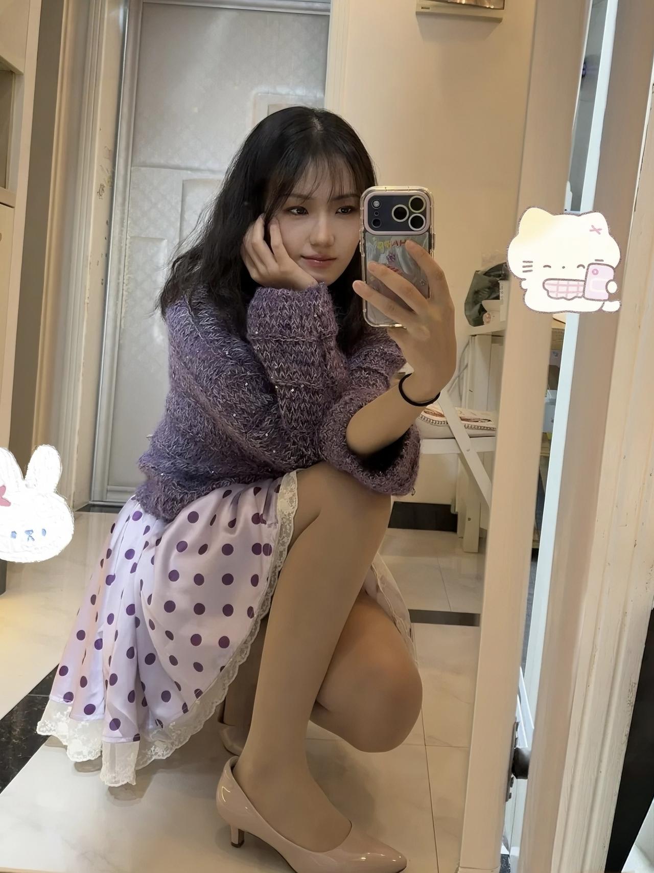 今天的OOTD是温柔紫系~💜 毛茸茸的香芋紫毛衣软乎乎的,混着细闪巨显白!搭浅粉波点裙+蕾丝边,甜妹氛围直接拉满~ 光腿神器+裸色小高跟,既保暖又悄悄拉长比例👗 宅家随手拍都好出片,这组温柔挂穿搭我先锁死啦!粉紫色毛衣 香芋紫轻奢穿搭 温柔紫系穿搭