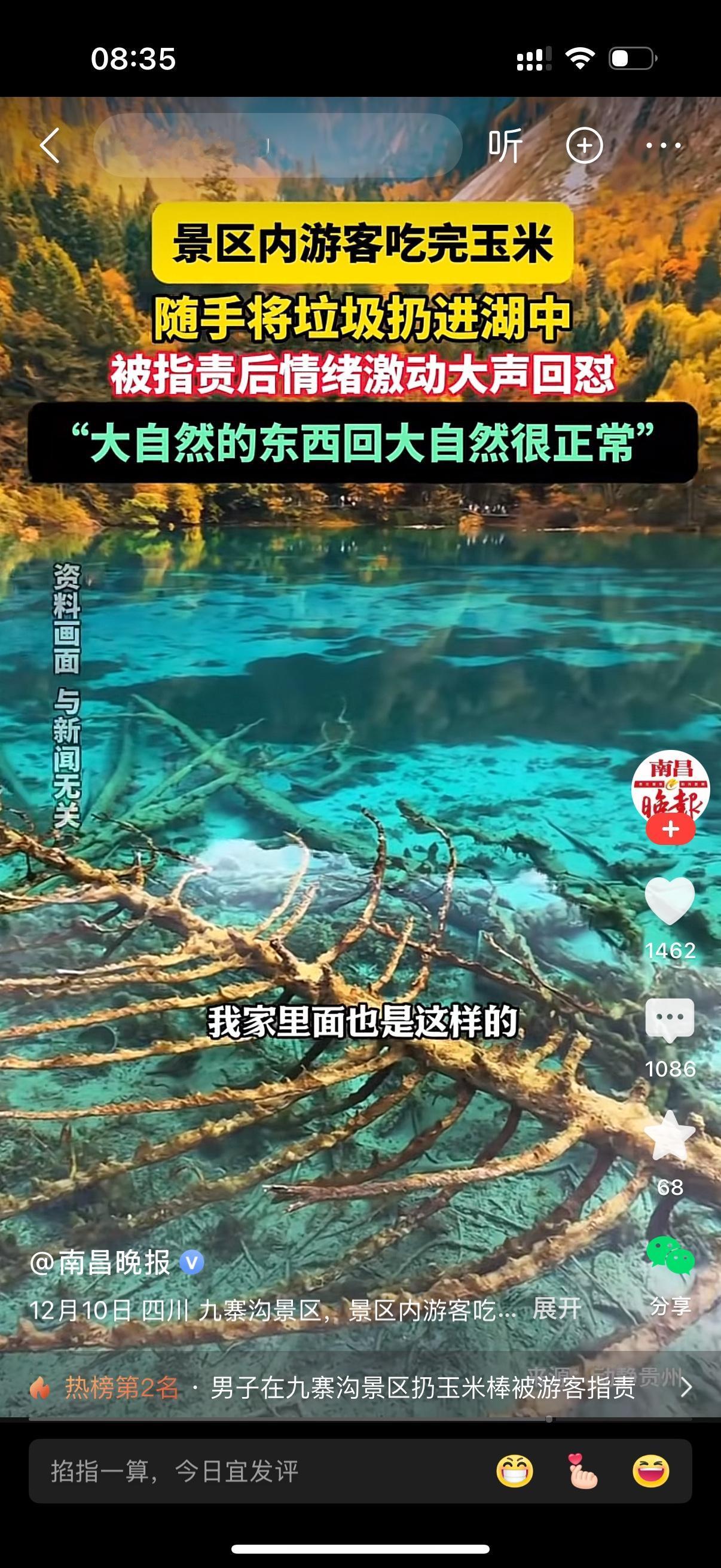游客在景区内吃完玉米,随手把玉米棒直接扔在湖里。景区工作人员进行劝阻,叫她不要乱扔垃圾。游客却胡搅蛮缠,她说,如果玉米有污染,你们为什么卖有污染的东西给我吃?游客还说,我认为自己没错,大自然的东西就要回归自然。我家里面也是这样的,我吃了就扔土里面。游客说得貌似很有道理,工作人员都被她搞得一愣一愣的。