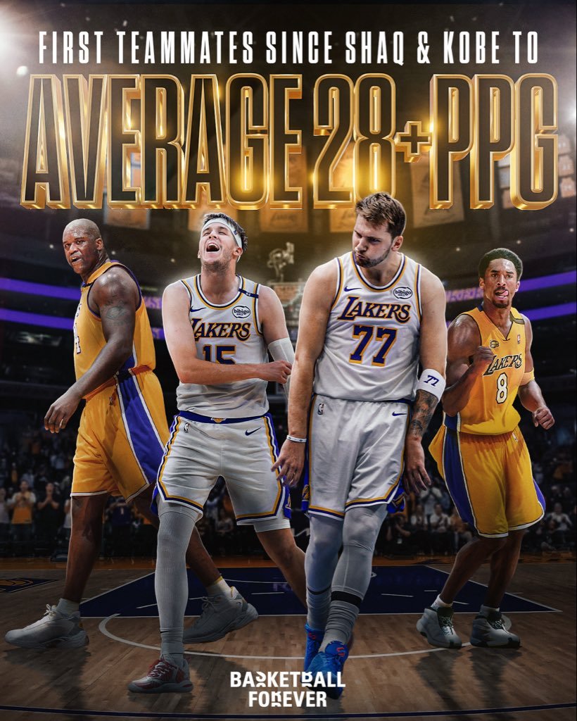卢卡·东契奇(35分)和奥斯汀·里夫斯(28.4分)是自2001年沙克和科比以来第一个赛季场均28分以上的队友。新赛季篮不住