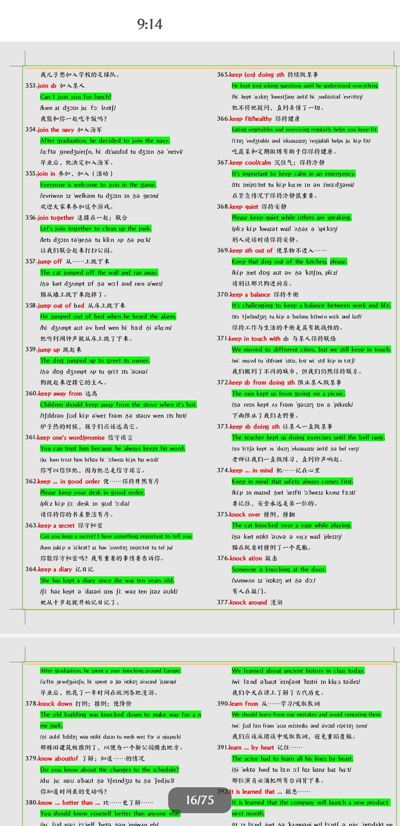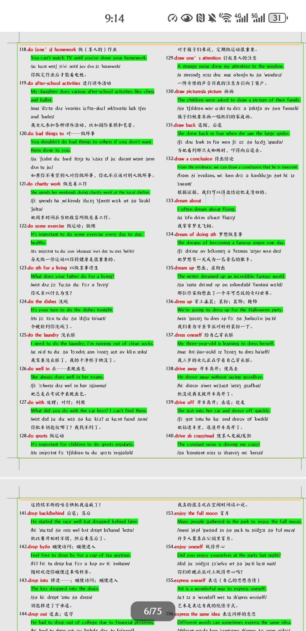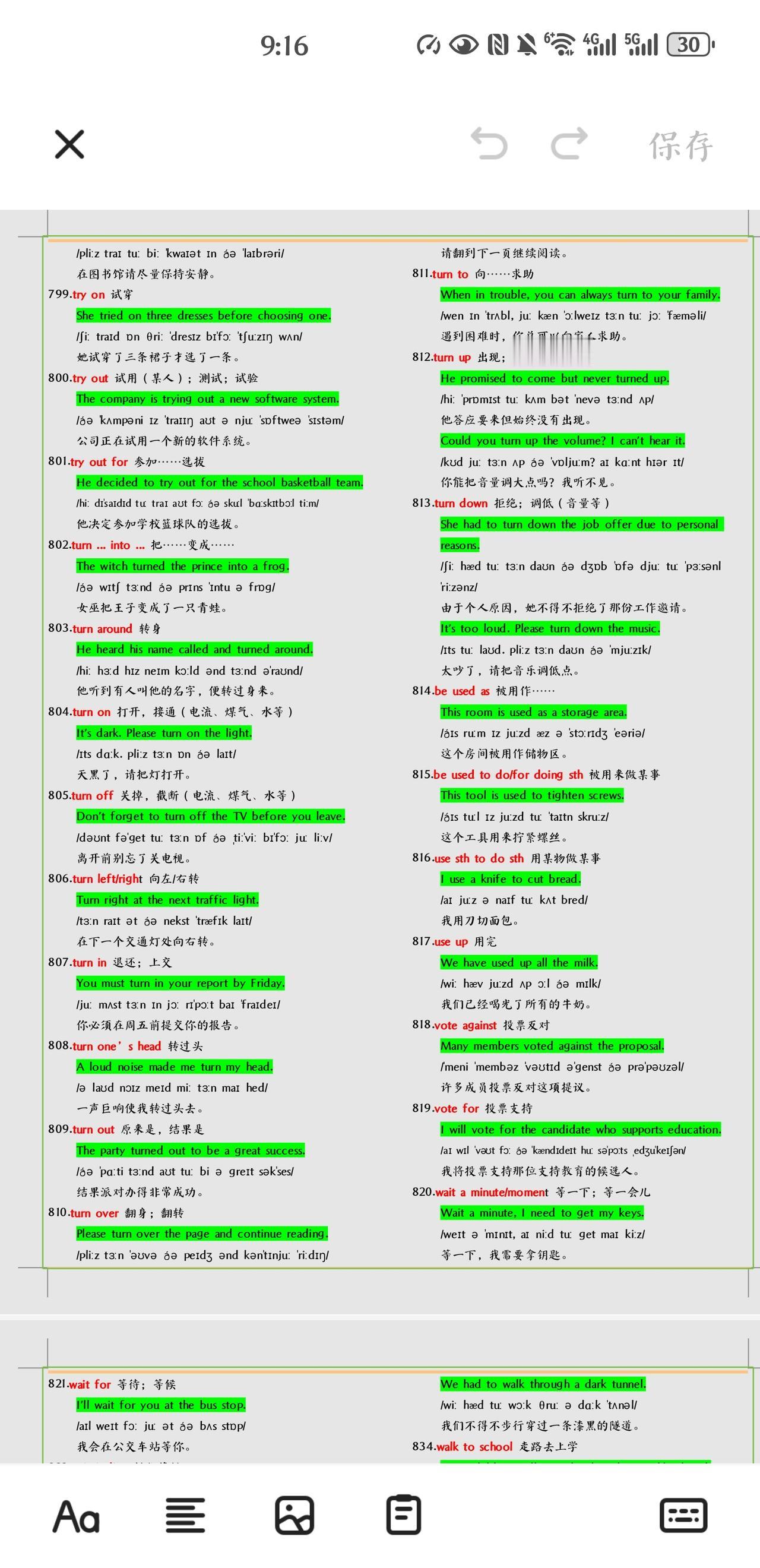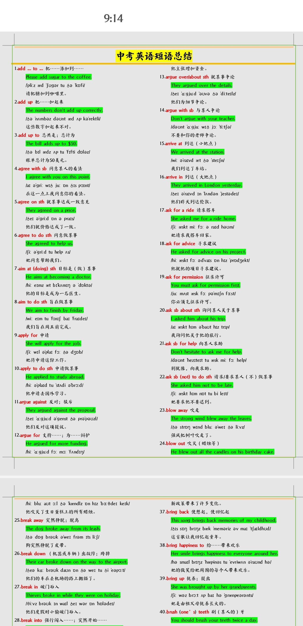 不得不学习掌握的中考英语短语+例句总结。