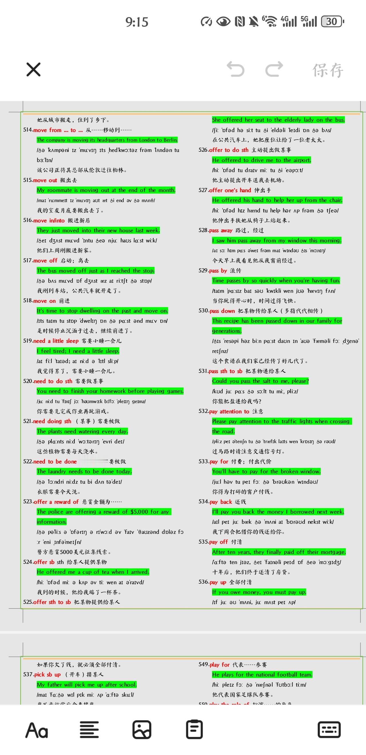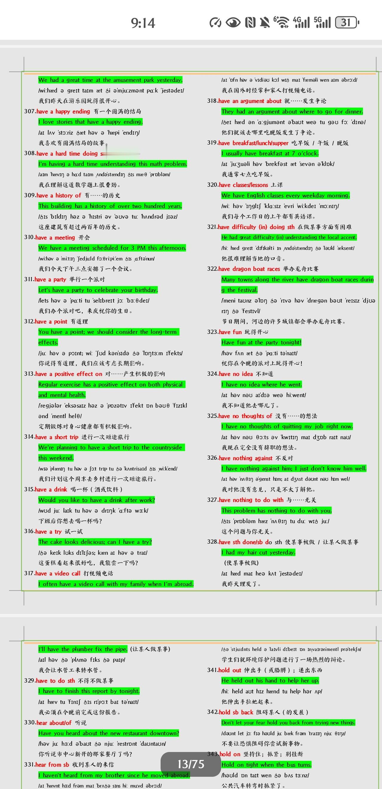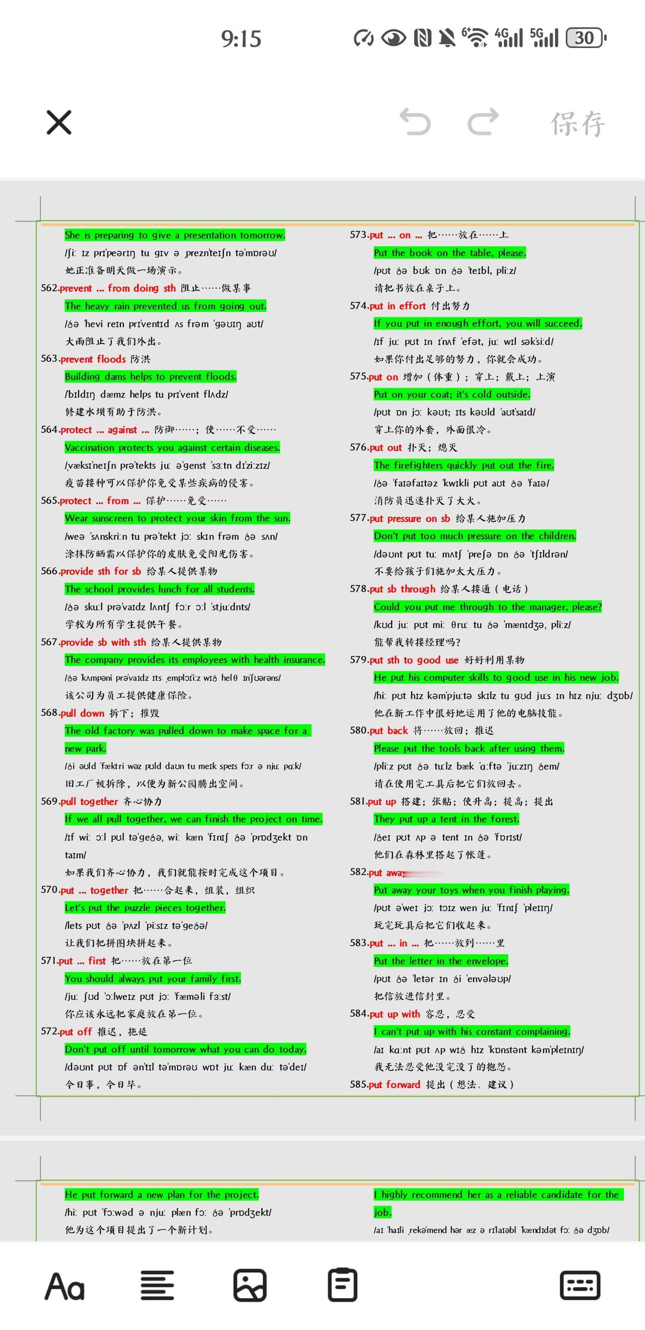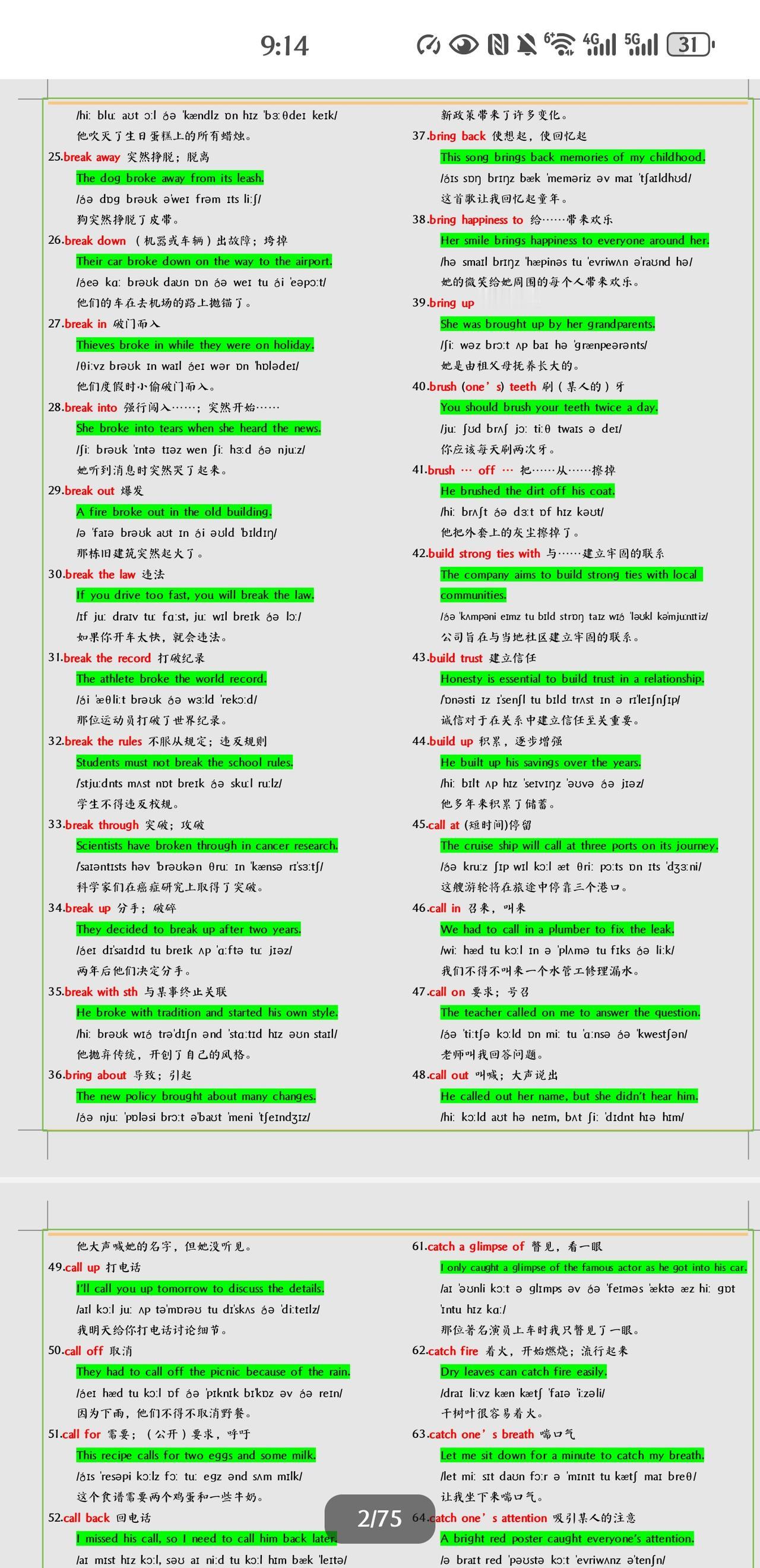 不得不学习掌握的中考英语短语+例句总结。