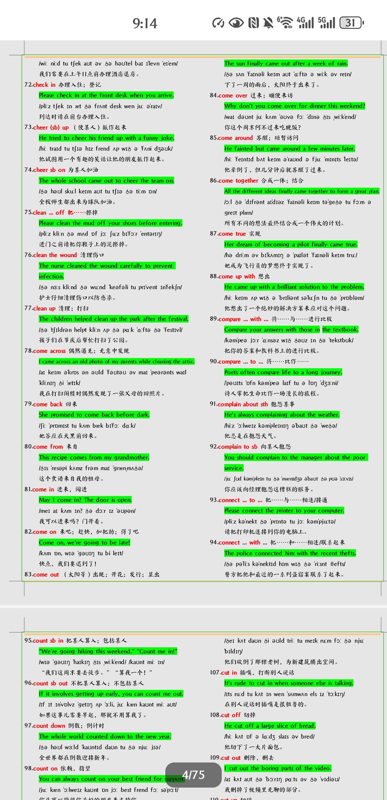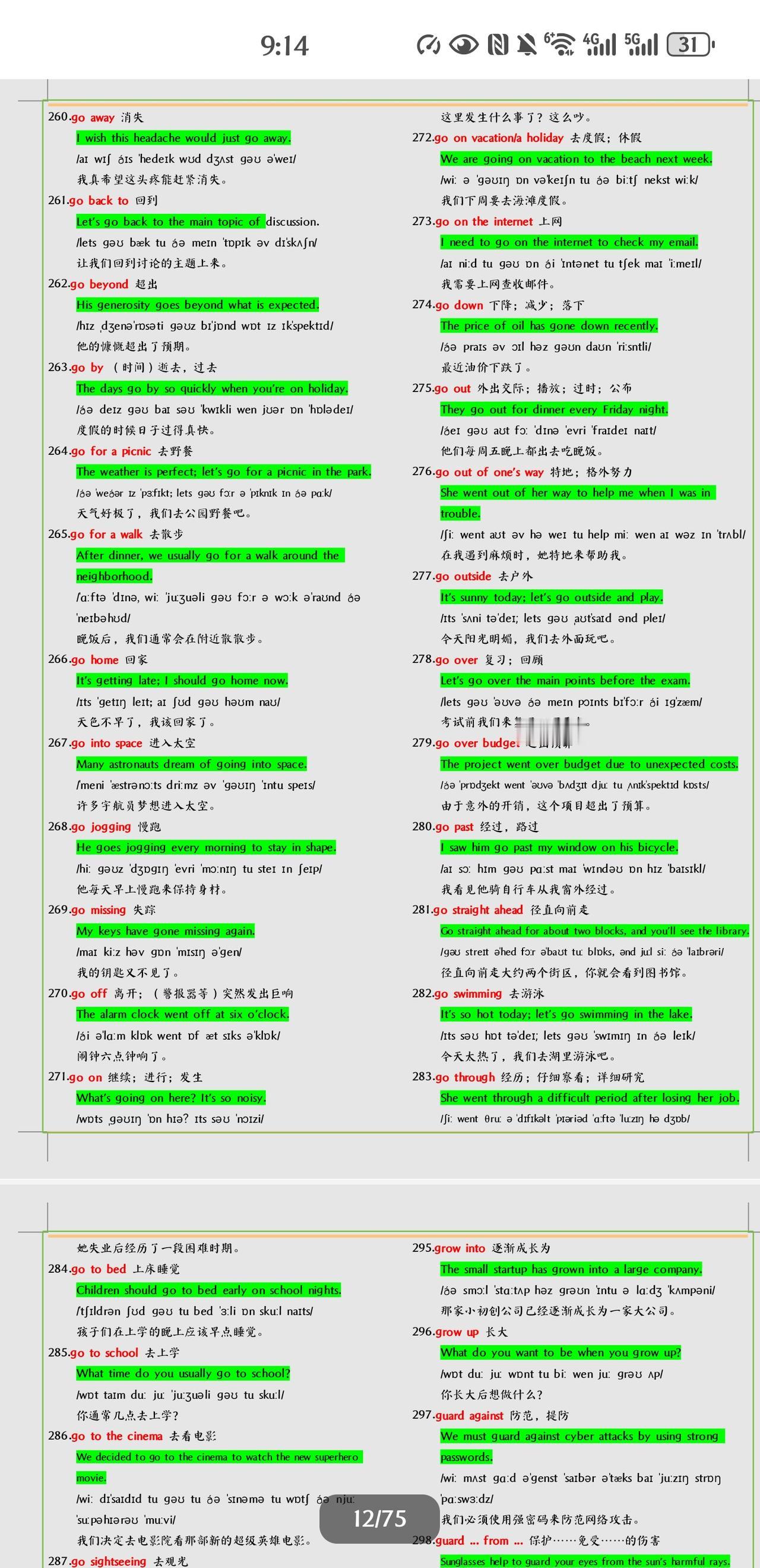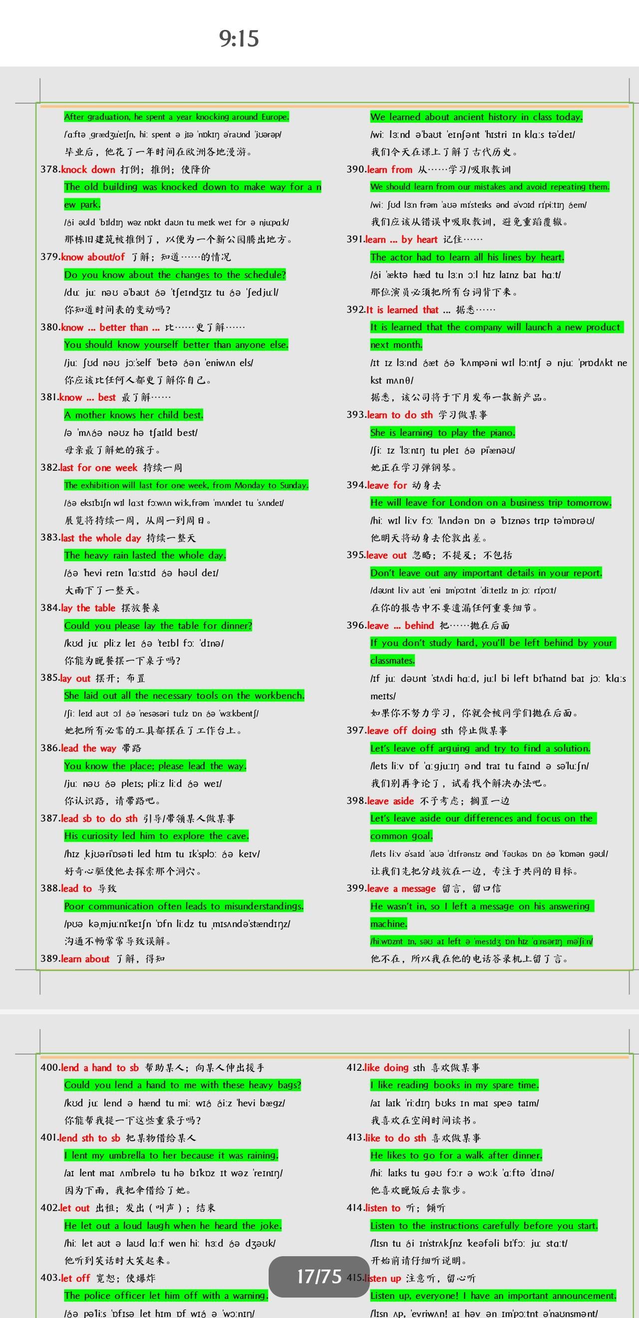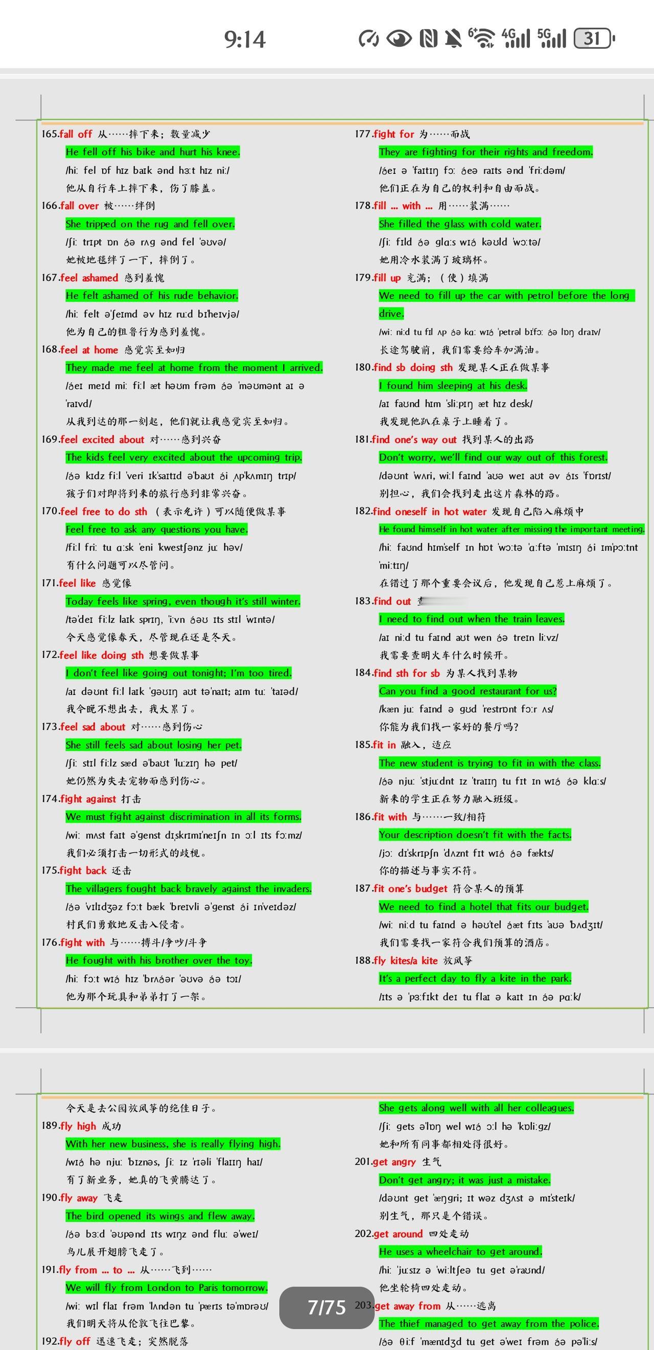 不得不学习掌握的中考英语短语+例句总结。