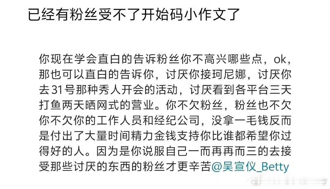 吴宣仪 训粉吴宣仪不止第一次训粉,她什么时候能够知道明星离开粉丝什么都不是,现在内娱早已和以前不一样,粉圈都是站起来追星,训粉=赶粉!