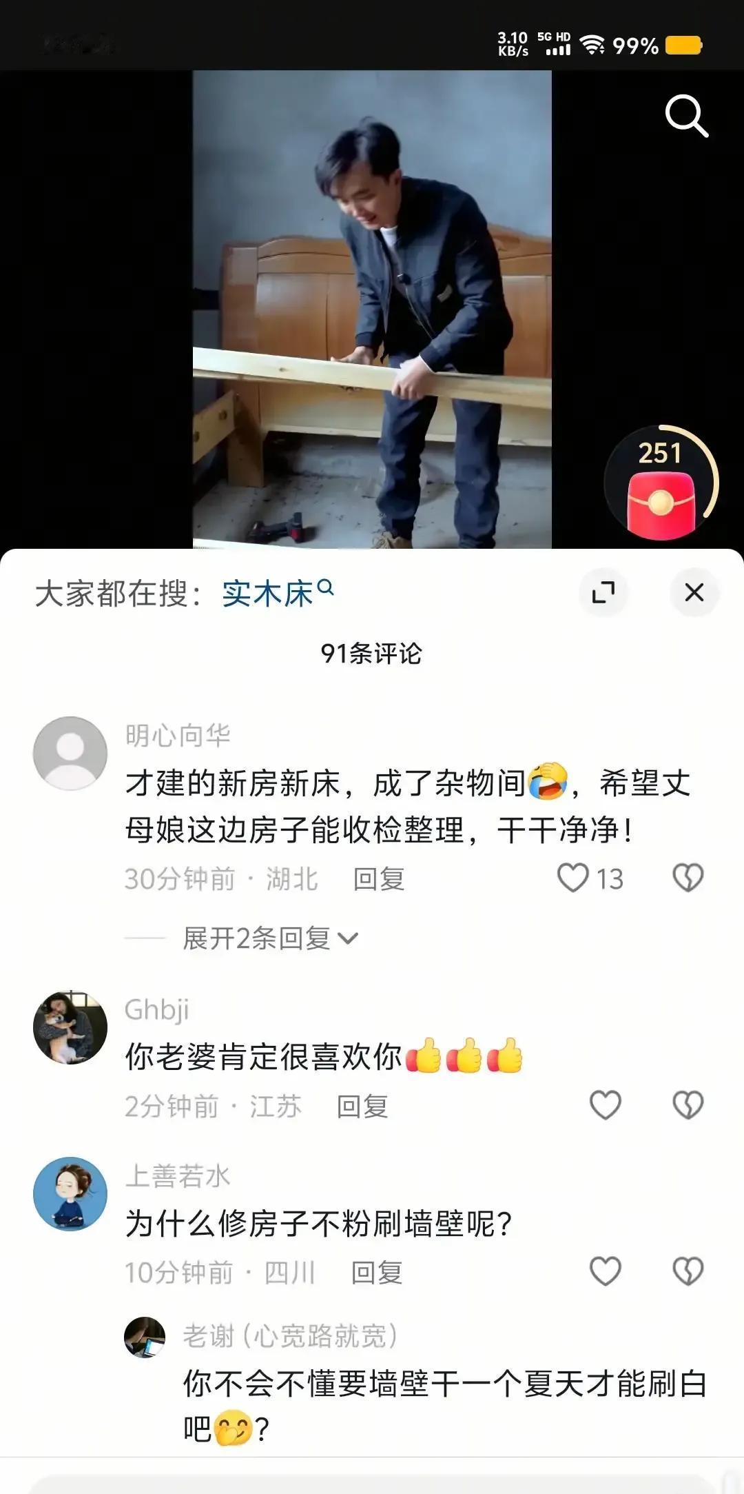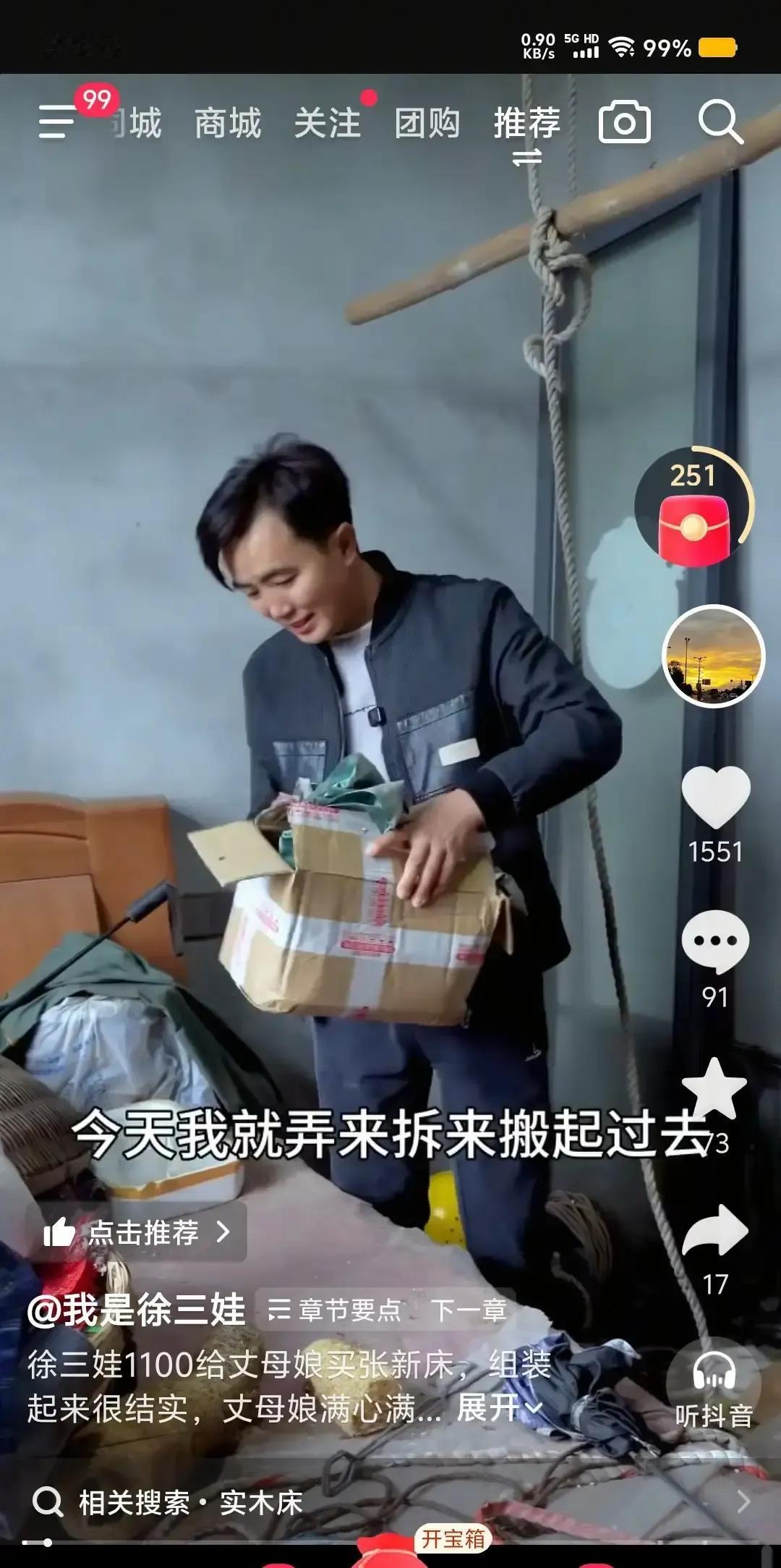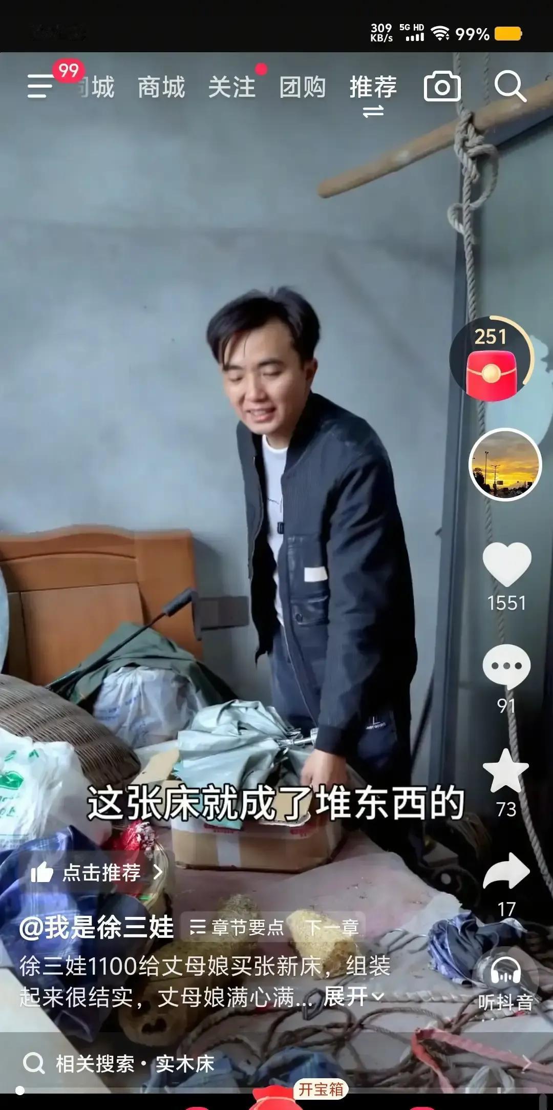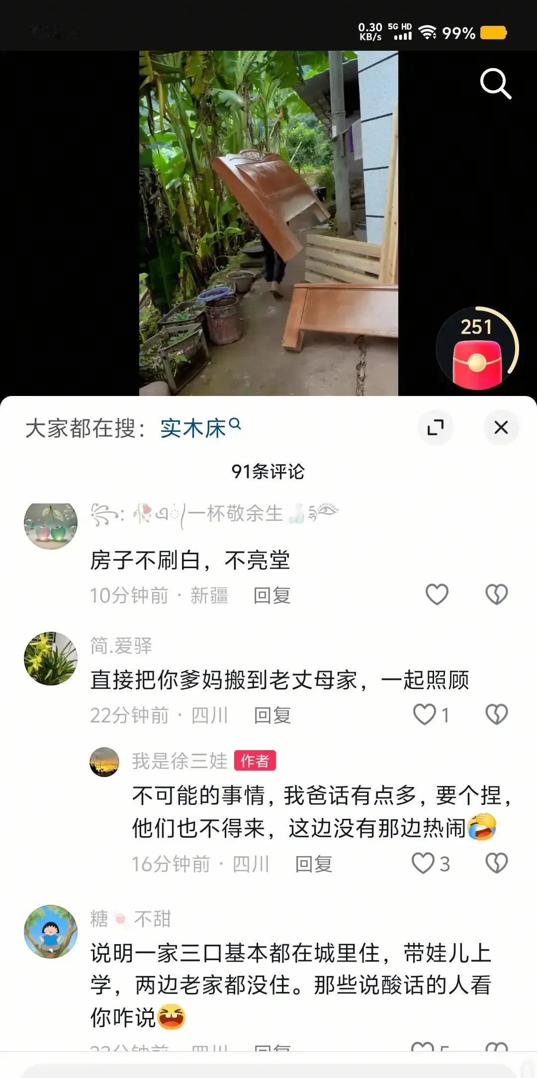 徐三娃把老家那张旧床拆下来扛到丈母娘新房,视频一出评论区直接炸锅。 镜头扫过他原来的卧室,墙皮掉得跟地图一样,地上化肥袋、破风扇、烂凳子堆成小山,活脱脱一个多年没人理的储物间。 丈母娘那边更离谱,墙面水泥都没抹平,钉子先打上了,床一摆就算“入住”网友辣评:亲爹住仓库,岳母先精装,这孝顺带滤镜。 他解释孩子在外上学,老家空着才变仓库,刷墙得排期。 我看说白了就是拍段子优先,哪头容易出片就收拾哪头,真把观众当傻小子。 孝心不是剪辑顺序,是口袋有钱先给谁花。 镜头可以骗人,墙角那层霉斑骗不了。