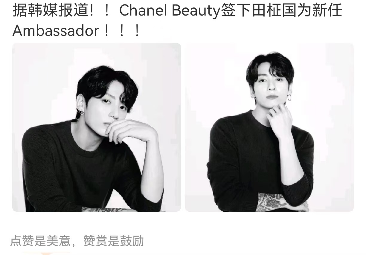 田柾国拿下香奈儿代言后 套奢一还是金泰亨吗?田柾国 香奈儿