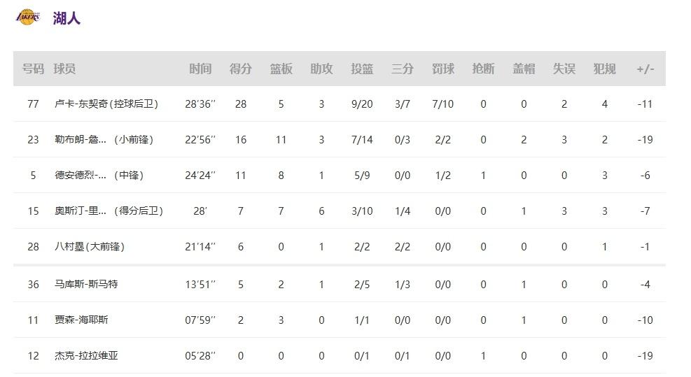 詹姆斯50%的命中率,为什么正负值又是负这么多? 虽然湖人比分落后14分,总算