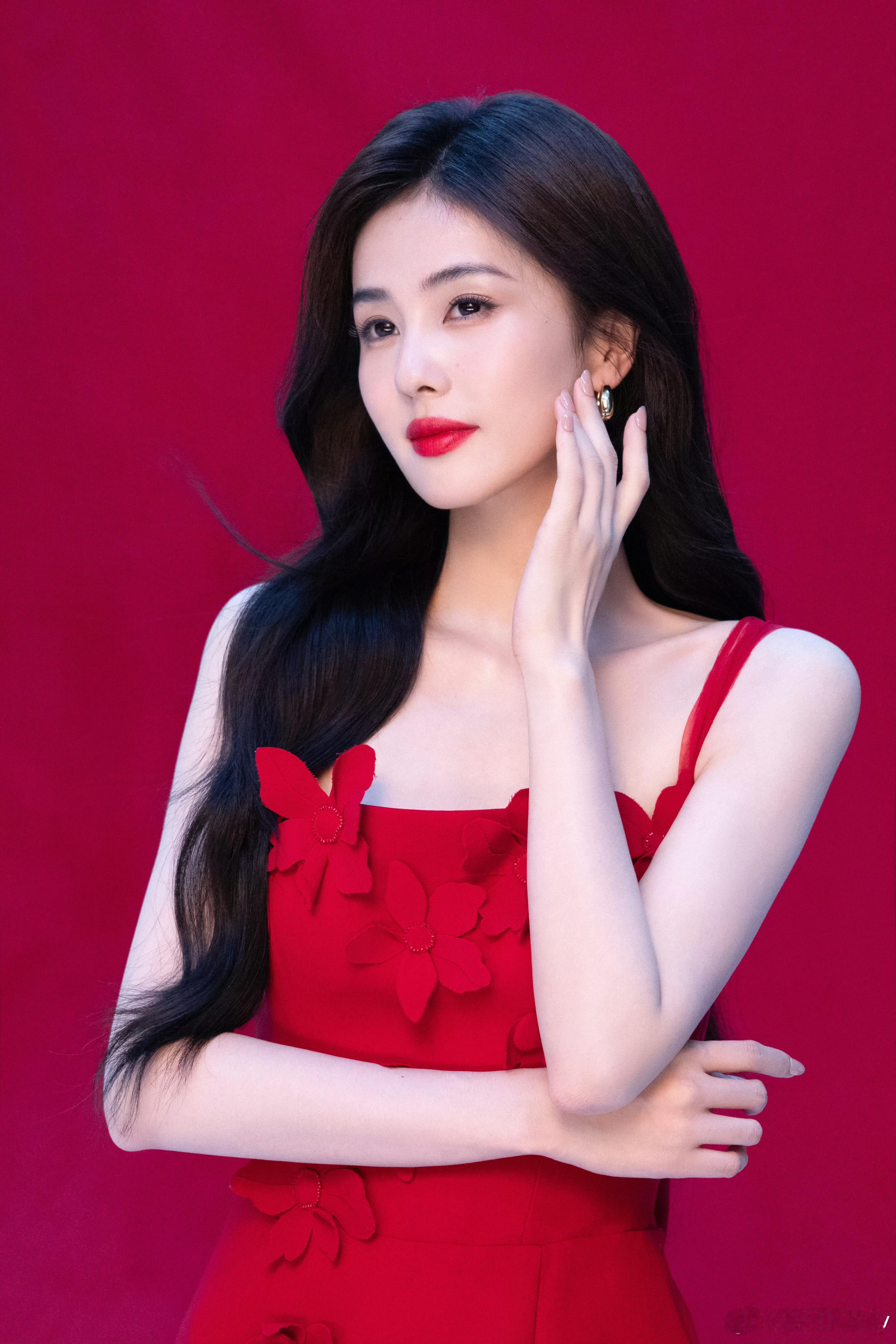 白鹿✖️香缇卡&WHITE PRIVEE 25秋冬系列白鹿今日释出Chantecaille香缇卡拍摄物料造型太明艳了!WHITE PRIVEE 25秋冬系列红色立体花朵长裙衬得气质热烈,红唇配金色耳饰点缀得刚好,红裙与背景相衬,明艳又风情,像朵鲜活的红玫瑰~时尚灵感解读|时尚头排客白鹿香缇卡亚太区品牌代言人