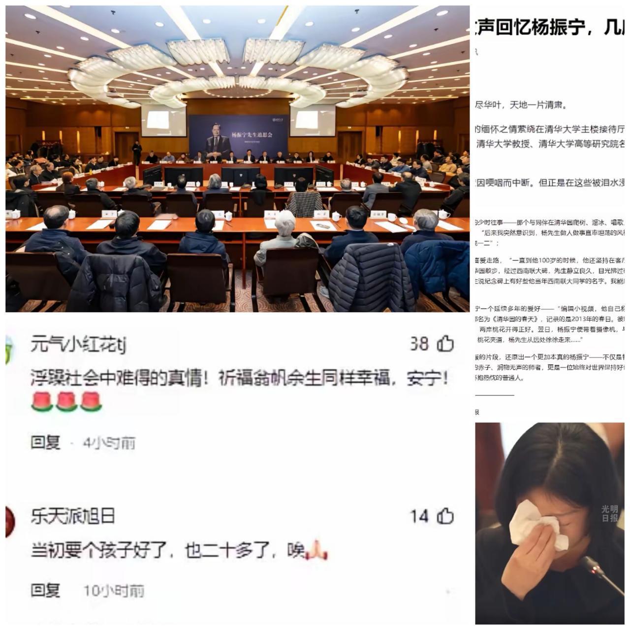 翁帆:从广外才女到科学巨匠灵魂伴侣的蜕变之路她站在追思会的光晕里,黑色衣裳显得手指格外分明。 当“最爱唱歌的杨先生”这句话从她唇间溢出时,声音突然被什么哽住了——那一刻所有人都看懂了,原来那个在广外图书馆里抄诗的姑娘,已在光阴里长成了能够支撑另一颗星辰的人。 记得是2003年清华园的初雪。那时的她刚从南方来,发梢还带着珠江的水汽,翻译的叶芝诗句被杨先生赞为“有光”。谁曾料想,这份对文字的敏感,后来竟成了连接物理世界与人文世界的桥。就连戴森教授收到她代笔的邮件时都感叹:那些艰深的术语,经她之手竟有了诗的韵律。 她的蜕变是静默的。碎花裙换成素色套装,谈话里济慈的诗行渐渐让位给“规范场”和“杨-米尔斯理论”。 直到某次聚会,她轻声复述出杨先生半个多世纪前的诺奖感言,在座学者们才恍然——她不只是生活里的陪伴,更是他学术生命的另一种延续。 最动人的改变在看不见的地方。杨先生百岁后仍坚持每日踱步,她便在一旁默默计数;他整理那些关于清华园的影像时,她已经将数十年积累的素材分门别类。 后来人们看到追思会上那帧桃花盛开的画面,忽然明白她说的“陪伴即理解”意味着什么——曾经握着诗集的手指,如今能如此稳定地为他调整镜头,只为留住他眼中的那个春天。 再回头看雪中那张合影,她黑衣肩头的积雪,早已化作岁月温柔的注脚。追思会上,当她提到西南联大纪念碑前杨先生凝视同窗姓名时的神情,那一瞬间的沉默比任何言语都深刻。 原来,这个用文字理解世界的女子,早已读懂了另一颗心最复杂的方程式——那是对故土永远的少年情怀。 二十年过去了,她用最静默的方式重新定义了“相守”这个词。当人们还在计算时间与年龄时,她已经证明:真正的灵魂共鸣,从来与岁月无关。 你觉得,一段理想的情感关系应该是什么模样?欢迎在评论区聊聊你的看法。