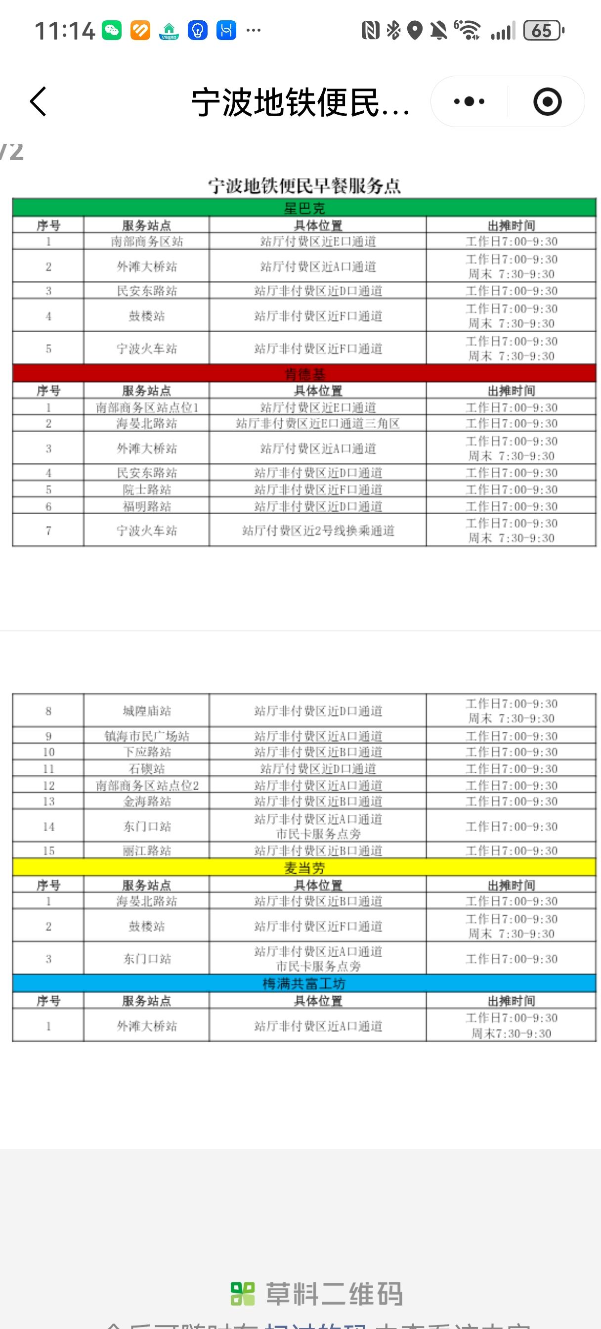 宁波地铁上班族有口福了 我以前坐地铁上班时,经常来不及吃早餐,都是赶到公司附近再去随便买点垫吧一下。那时就想着如果地铁里能有卖早餐的就方便了。没想到等我退休了,这个愿望才实现。 近期宁波地铁在十几个大站的站厅内专门为地铁上班族推出了“阿拉地铁,早安宁波”便民早餐服务点,用热气腾腾的早餐温暖着上班“牛马们”的通勤时间。 麦当劳肯德基星巴克再加上中式包子花卷豆浆,满足不同的口味需求,采用“现场即买即走和线上提前预定”双模式,高效又贴心,丝滑顺畅。 真心为宁波地铁的暖心点赞👍,宁波上班族们体验感很棒,好评如潮,推出一周就狂炫一千多份早餐。