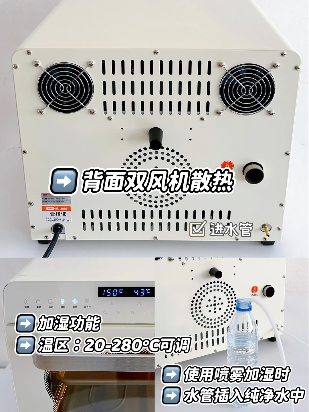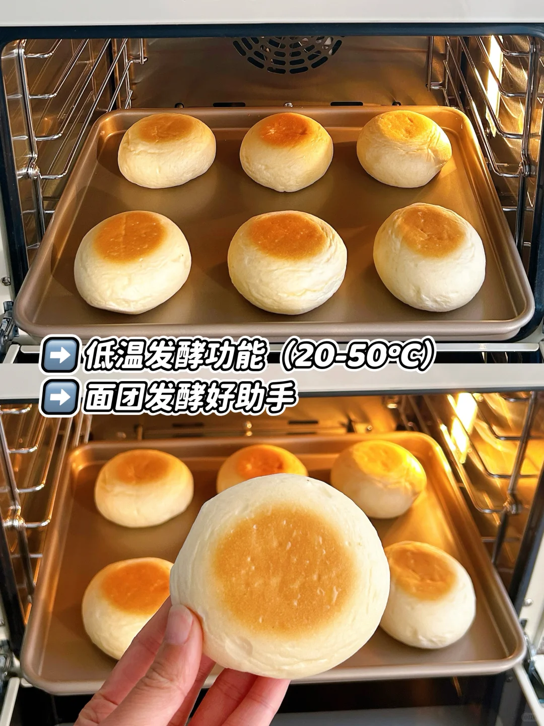 6️⃣发酵和喷雾加湿功能:20-50℃可调节,发酵好帮手,让面团快速均匀膨胀;还有一键喷雾加湿,为食材及时补水,欧包法棍轻松制作