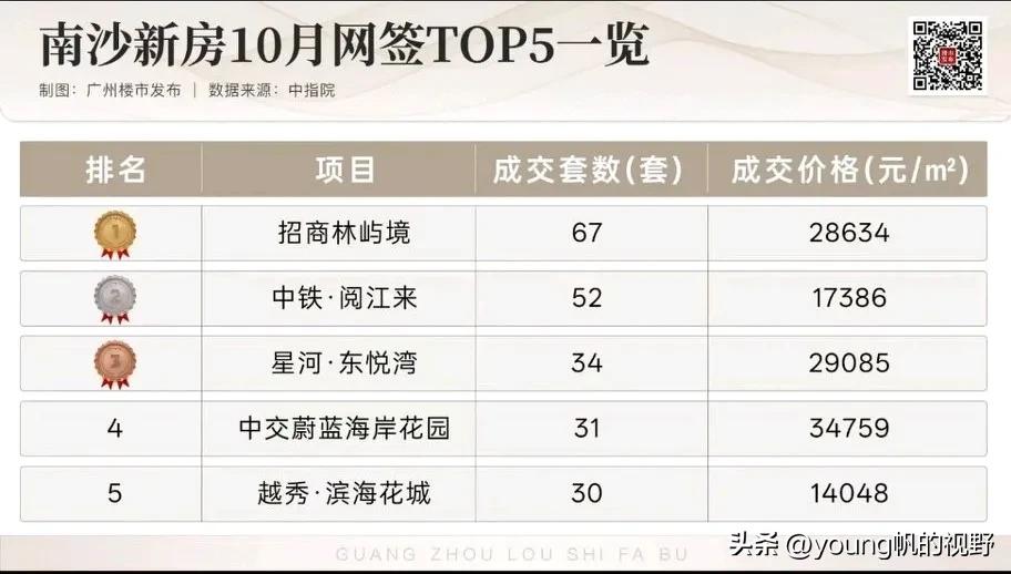 虽说现在的楼市不太景气,但广州南沙这边交易情况看着还行吧?从10月份交易量前五的楼盘来看,新盘小区最高价还能卖到三万多。而靠近区府的东悦湾也能维持在三万左右。从数据来看,目前新盘价格和二手差不多,甚至一些新盘还比二手的低。不过这也有地理要素,有些新盘的位置比较偏,就综合条件来说,可能不如次新盘了。