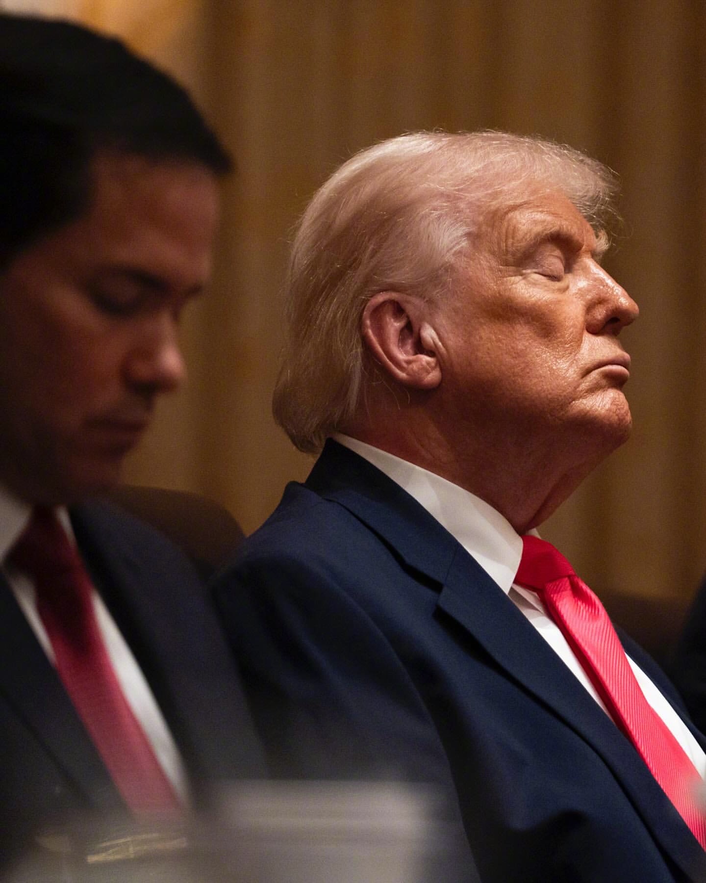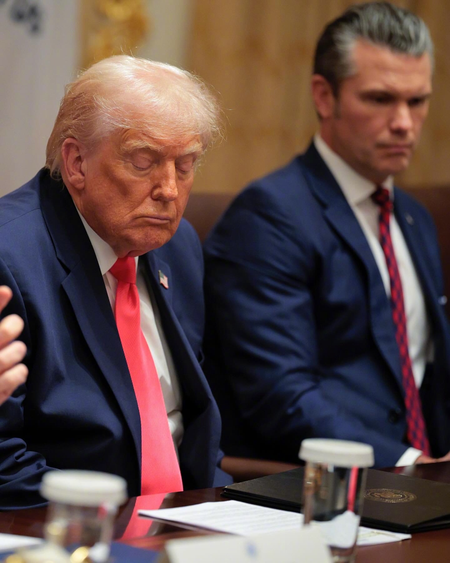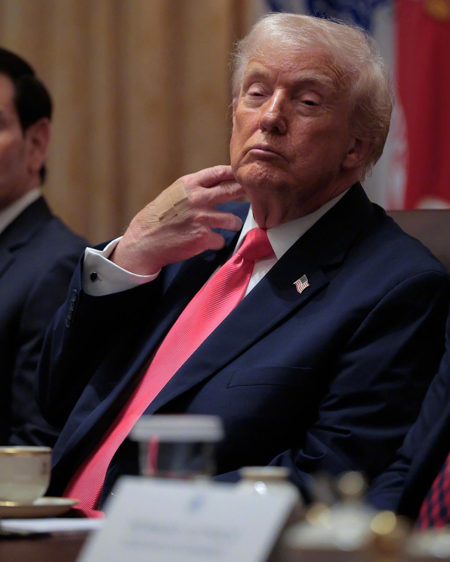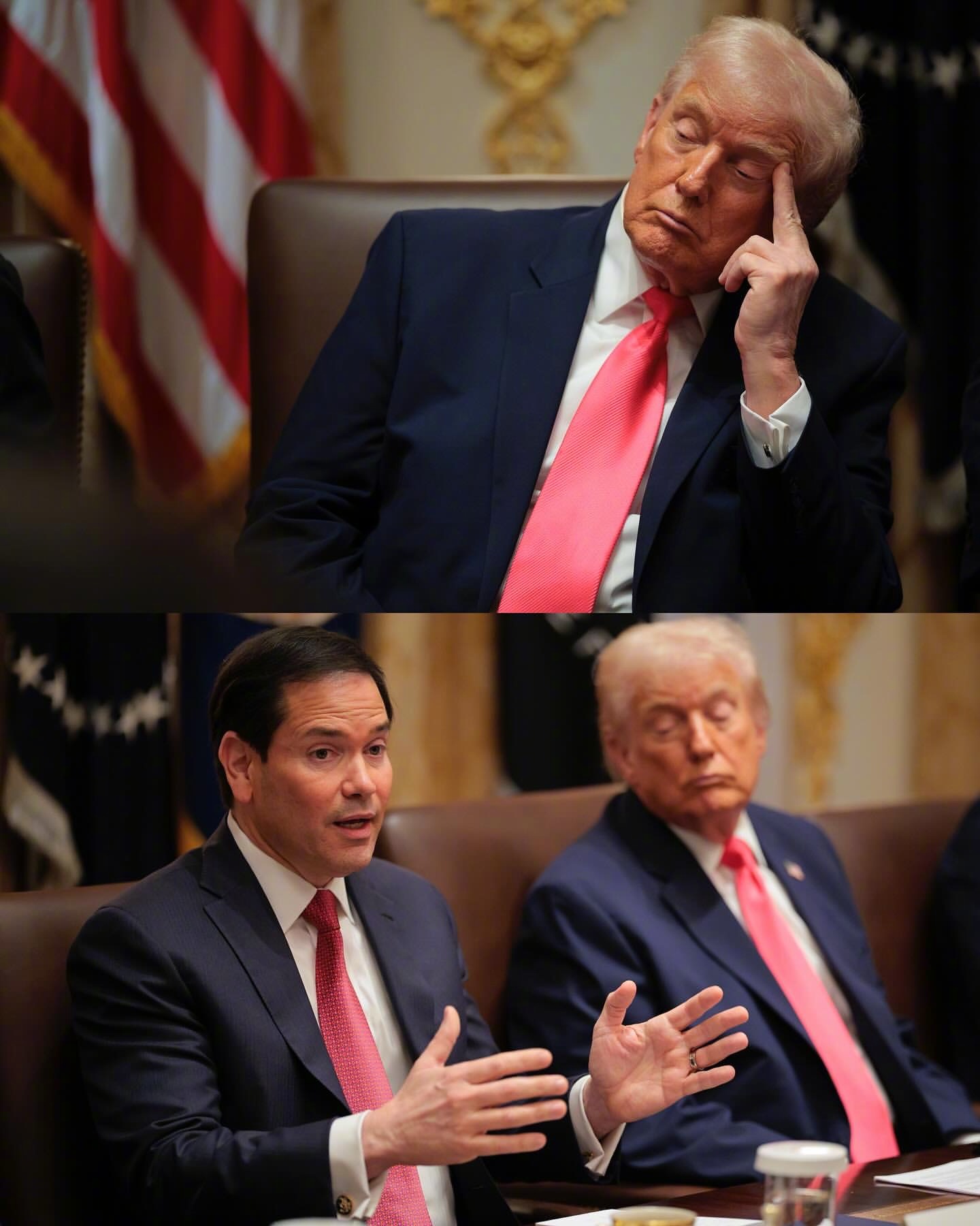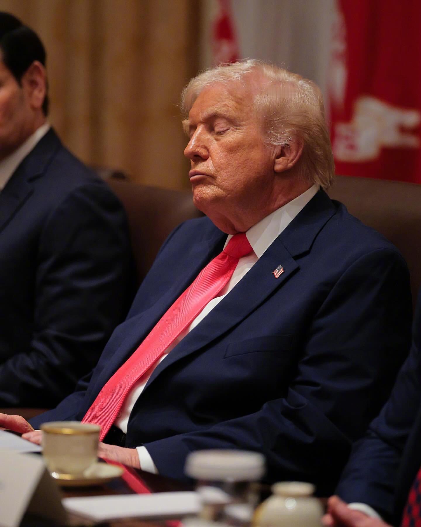79岁“打工人”的日常!特朗普在持续了三小时的国安相关的内阁会议上。