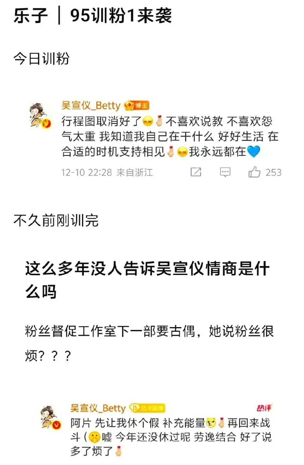 吴宣仪训粉又上热搜了,被批做爱豆既要又要情商低。 吴宣仪昨天发微.博说是不是应