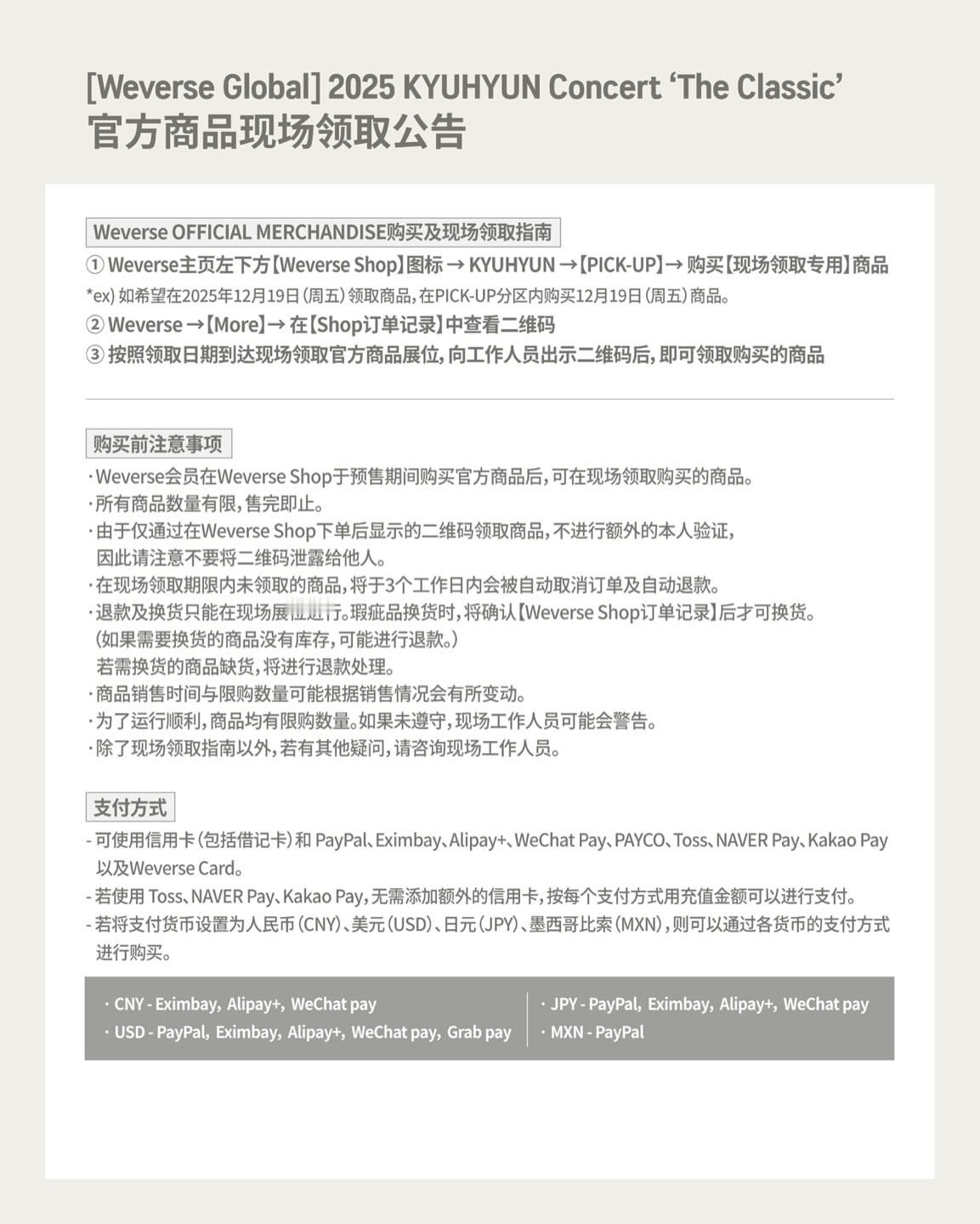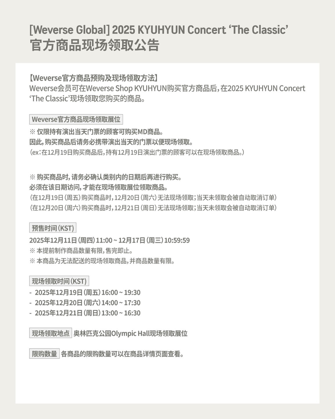 “CB百蓝_。251211 kyuhyun_official更新曺圭贤 相关:2025 圭贤 (KYUHYUN) Concert ‘The Classic’OFFICIAL MD 现场领取指南🎻预售时间 : 2025. 12. 11. (四) 11AM ~ 2025. 12. 17. (三) 10:59AM🎻现场领取时间 : 演出开始前4小时 ~ 开始前30分钟🎻现场领取地点 : 奥林匹克公园奥林匹克大厅现场领取展位详情请参考图片.圭贤KYUHYUNTheClassic