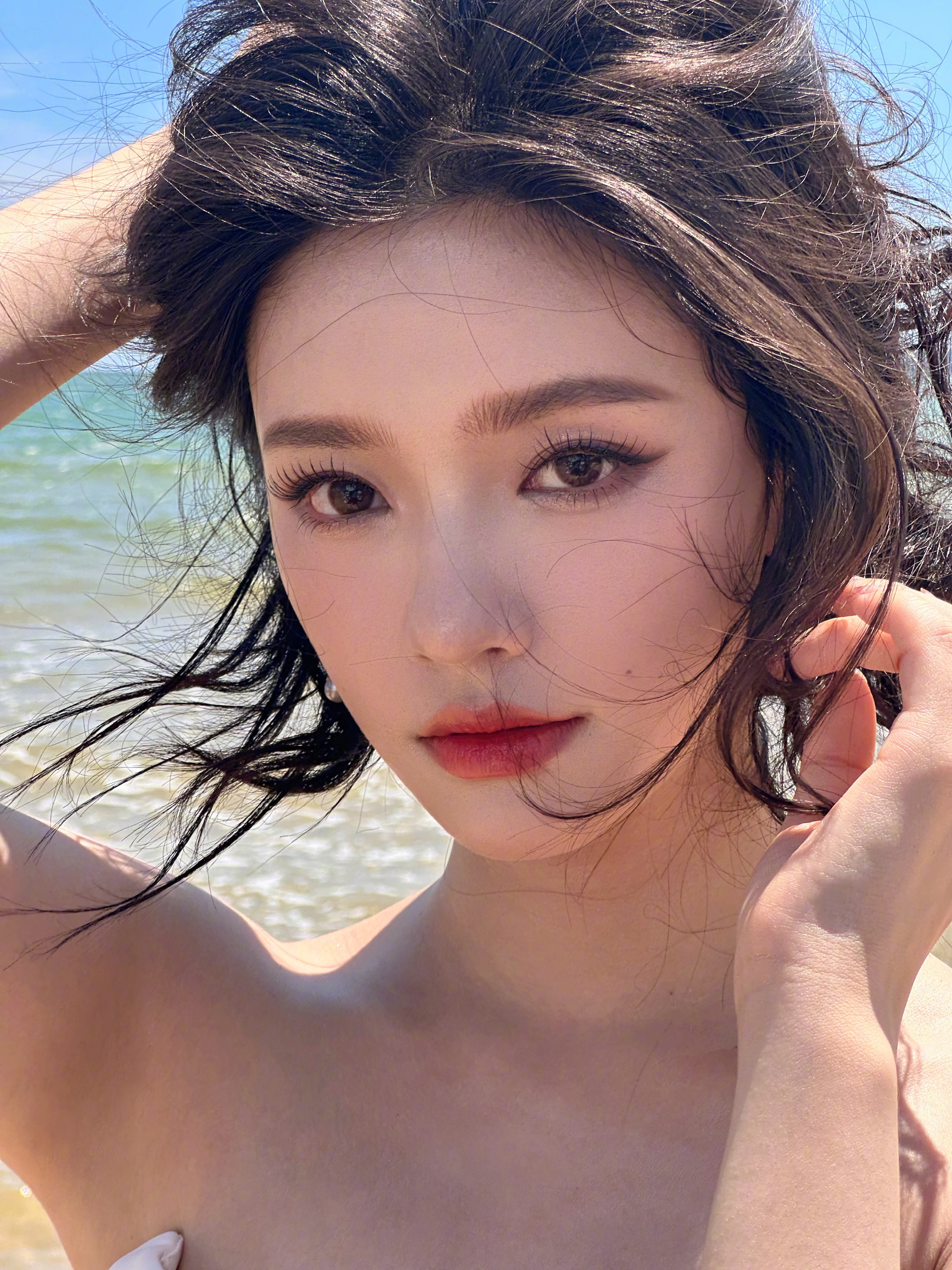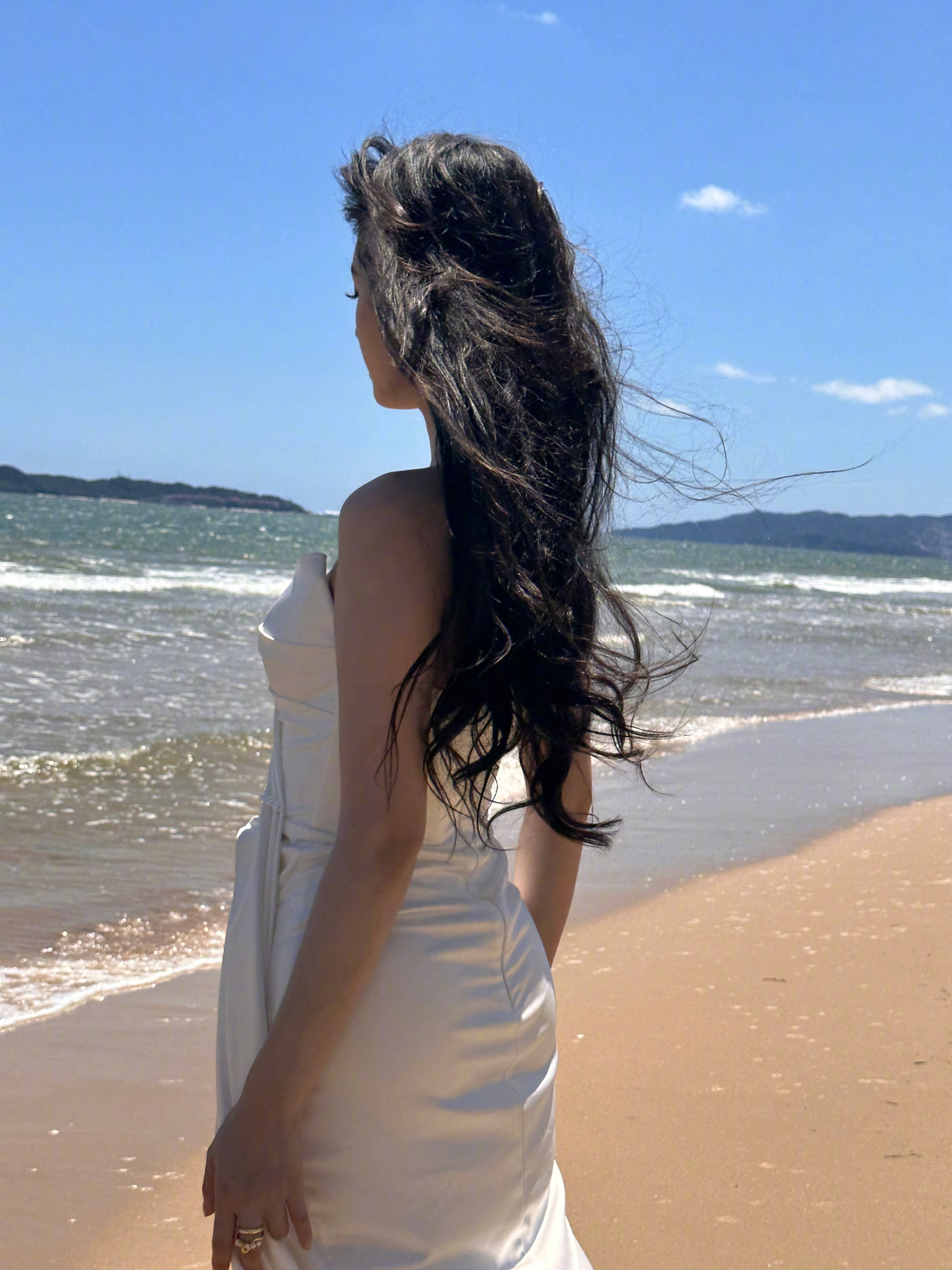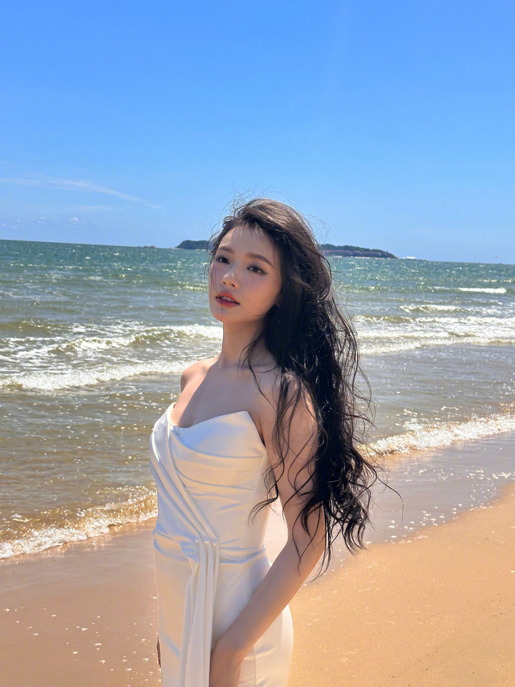 林允,白裙倩影,海边美丽的美人鱼。林允