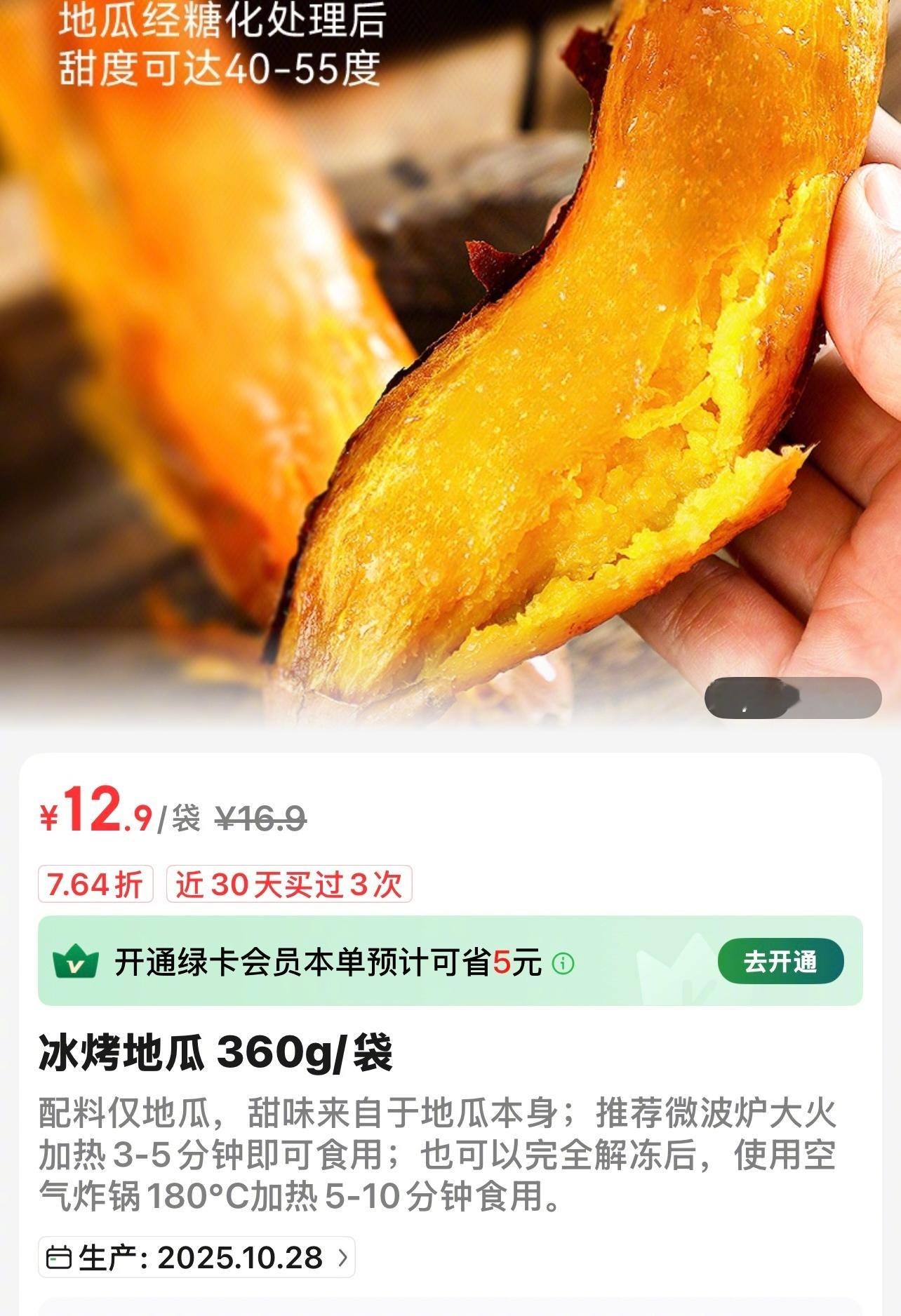 mila好物分享 给你们说啊,这个红薯超级好吃。冷冻的,拿出来在空气炸锅里烤10分钟即可,一袋里有时候是两个大的有时候是三个小的。控制血糖的人:红薯冷冻后加热吃升糖会慢一点,因为冷冻过程会改变红薯的淀粉结构,使其转化为抗性淀粉,这种淀粉更难被消化吸收,从而减缓血糖上升速度。当然不吃就干脆不会升糖!
