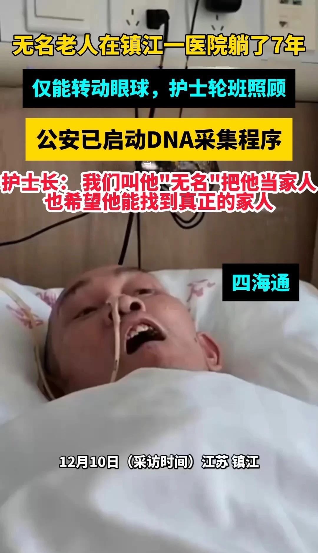 看哭了…镇江一医院有位“无名”老人,躺了7年只能转眼球,护士们轮着照顾把他当家人,现在终于启动DNA寻亲了💔