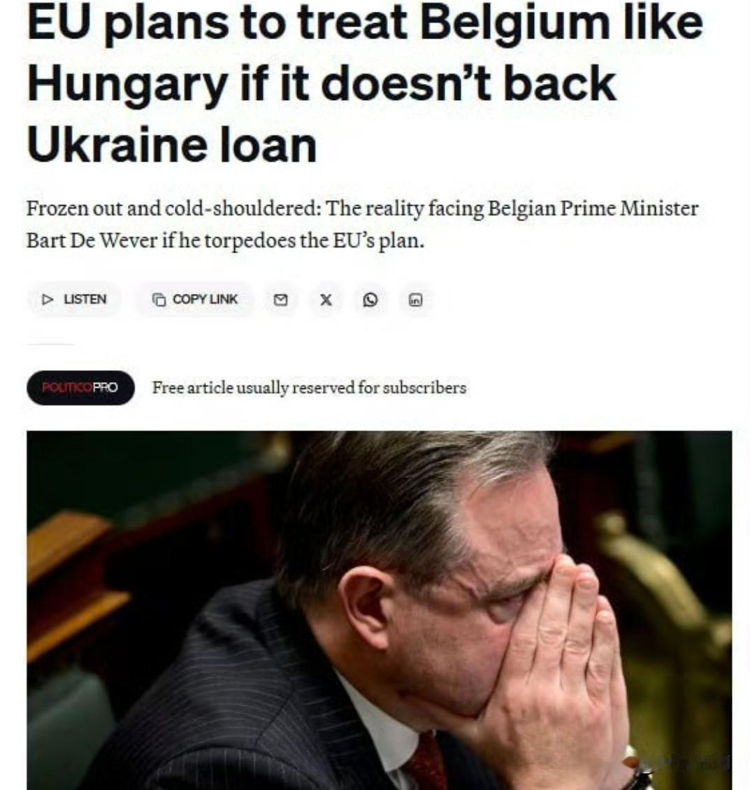 美国《政客》认为,如果比利时首相德维弗继续拒绝欧盟窃取俄罗斯资产的计划,他将被欧盟各国孤立,成为“欧尔班”那样的“政治贱民”。