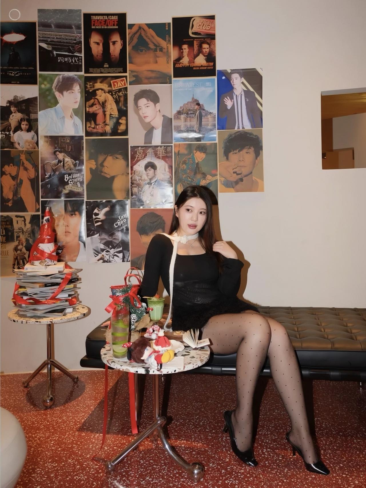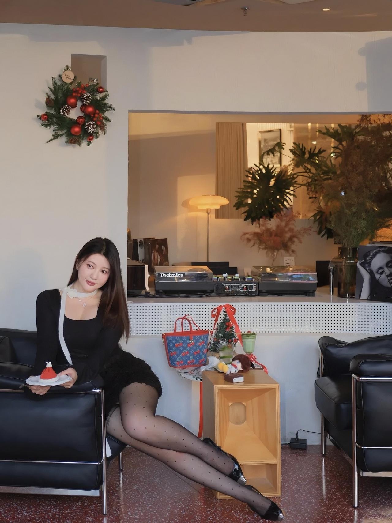 圣诞氛围里的甜酷小黑裙 圣诞季的氛围感被这家店狠狠拿捏了~黑色毛绒小黑裙配波点黑丝,甜酷感拉满,和店里的圣诞装饰、复古海报搭在一起,随手拍都是画报感✨ 拿着小蛋糕的瞬间,好像掉进了浪漫的圣诞电影里。原来节日的快乐,就是穿喜欢的衣服,在喜欢的角落捕捉美好呀~你们的圣诞穿搭准备好没?轻奢时尚黑裙 黑裙少女风 棕色开叉裙