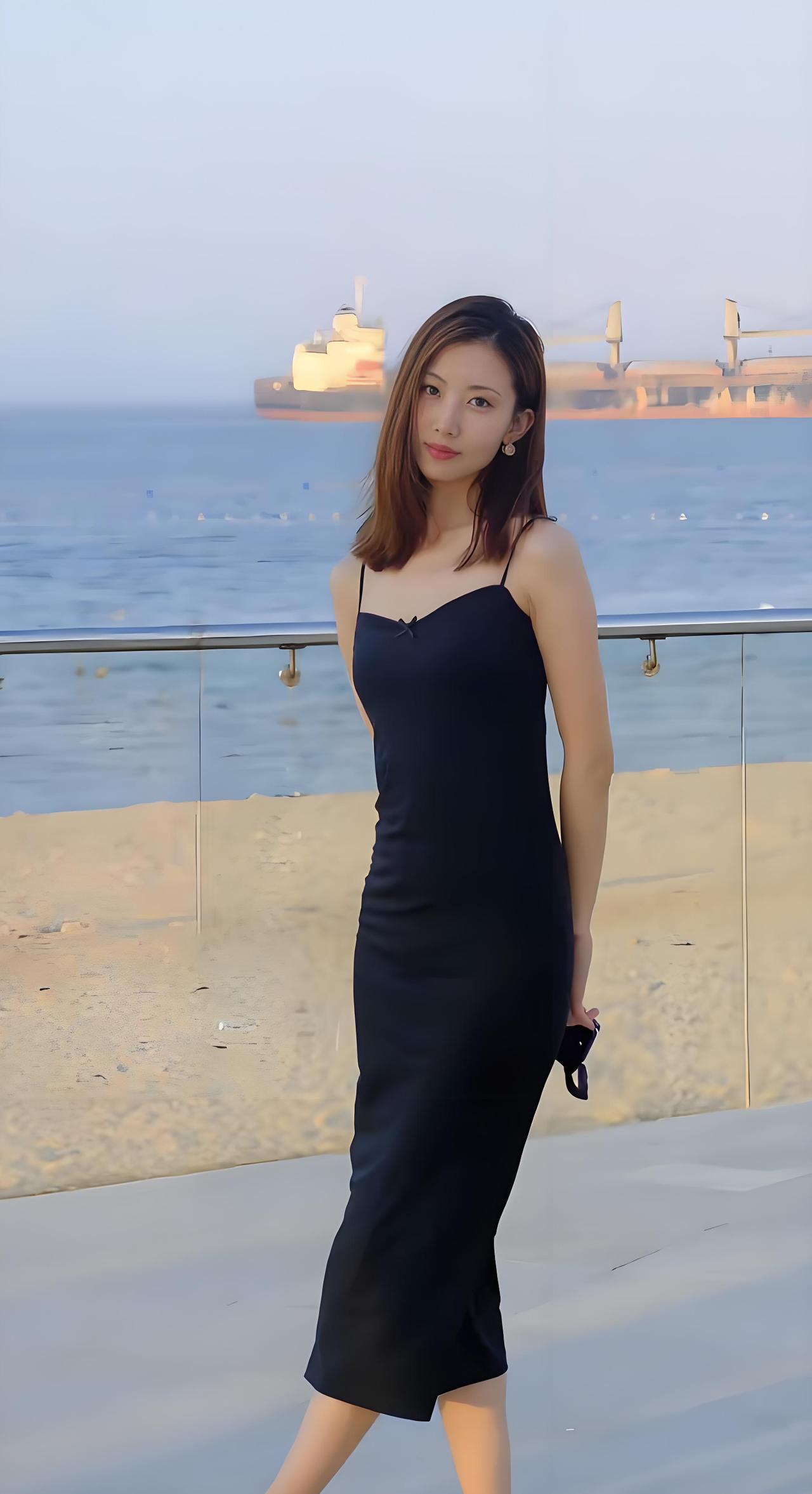 蓝色收身连衣裙搭配黑丝高跟鞋,曼妙身材,性感妩媚。