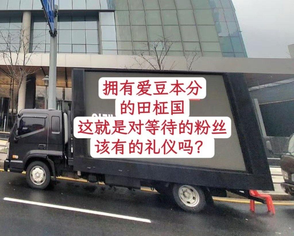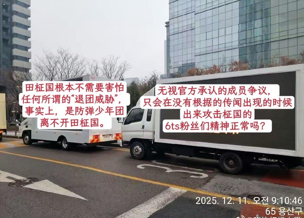 中粉和韩粉给田柾国送的卡车 截然不同的态度 韩粉:活出团队 欺骗粉丝 中粉:哥哥别怕 我们永远相信你 一直和你在一起