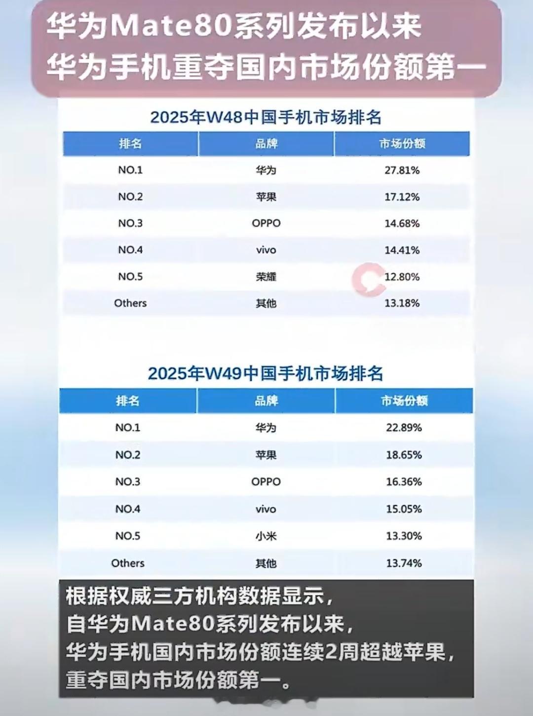华为重夺中国手机市场份额第一今天是重夺,明年就是断档领先。未来折叠屏和三折叠的市场,对手打着望远镜都找不到华为的影子……
